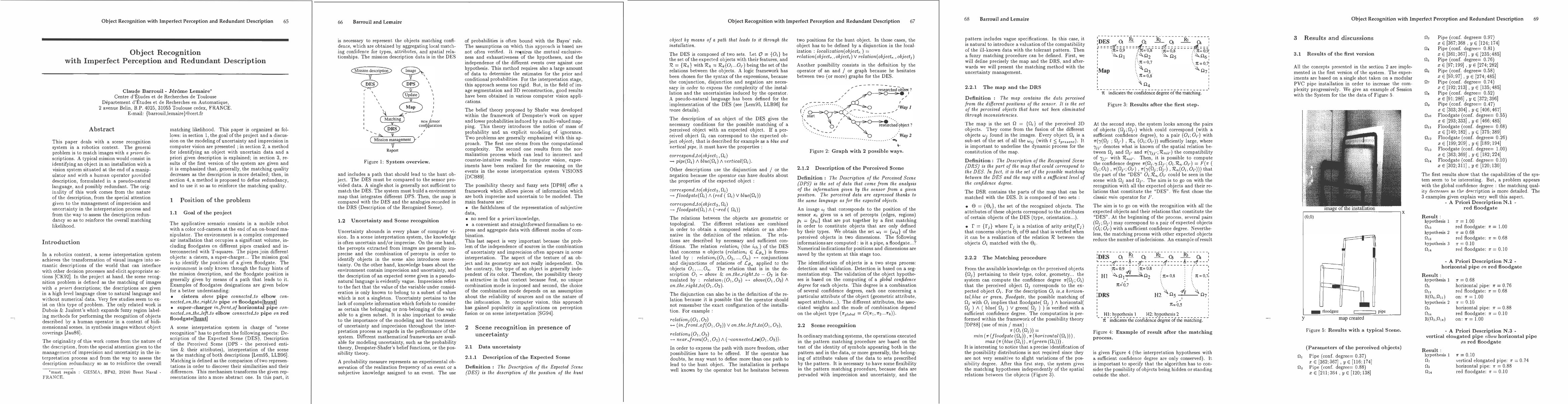 This paper presents a scene recognition system for robotics that matches images with a priori descriptions, focusing on managing imprecision and uncertainty while assessing and reducing description redundancy to enhance matching likelihood.