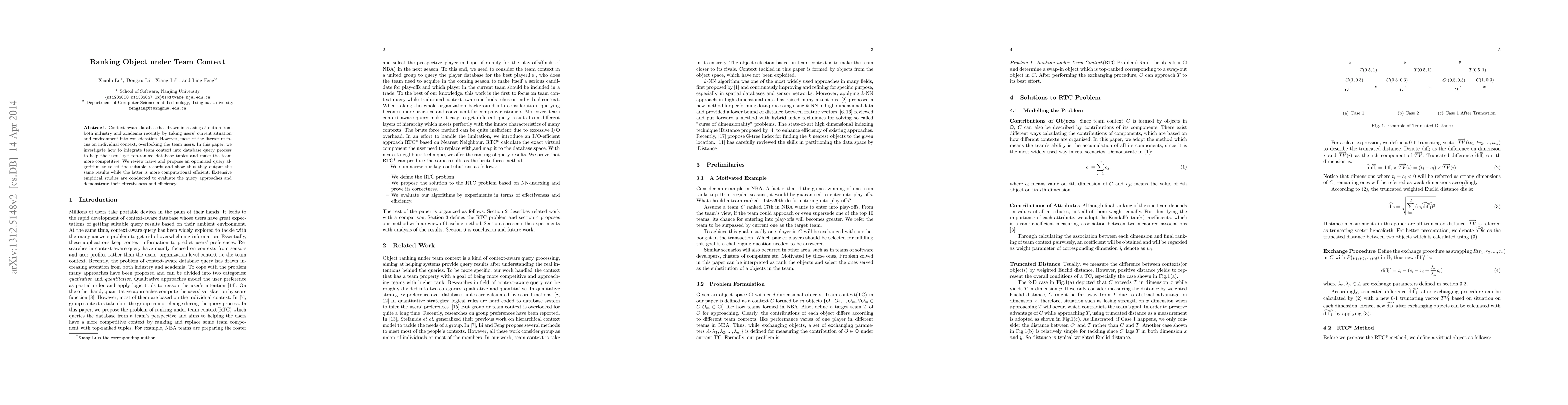 Context-aware database has drawn increasing attention from both industry and academia recently by taking users' current situation and environment into consideration. However, most of the literature focus on individual context, overlooking the team users. In this paper, we investigate how to integrate team context into database query process to help the users' get top-ranked database tuples and make the team more competitive. We introduce naive and optimized query algorithm to select the suitable records and show that they output the same results while the latter is more computational efficient. Extensive empirical studies are conducted to evaluate the query approaches and demonstrate their effectiveness and efficiency.