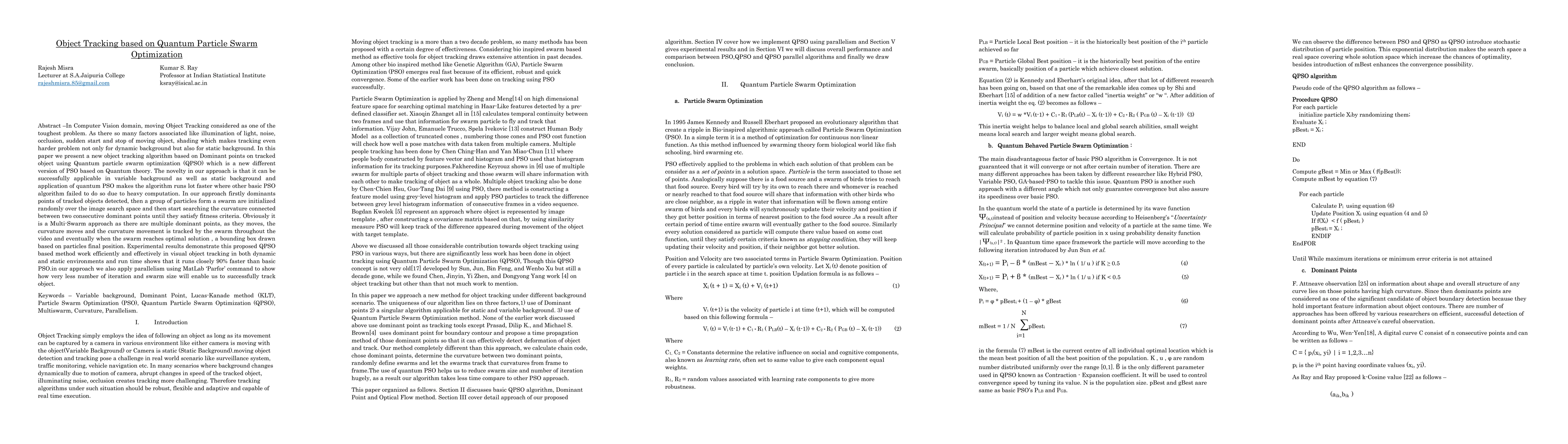 A novel approach for object tracking using Quantum Particle Swarm Optimization (QPSO) is proposed, combining Dominant Points with QPSO to achieve faster and more accurate tracking.