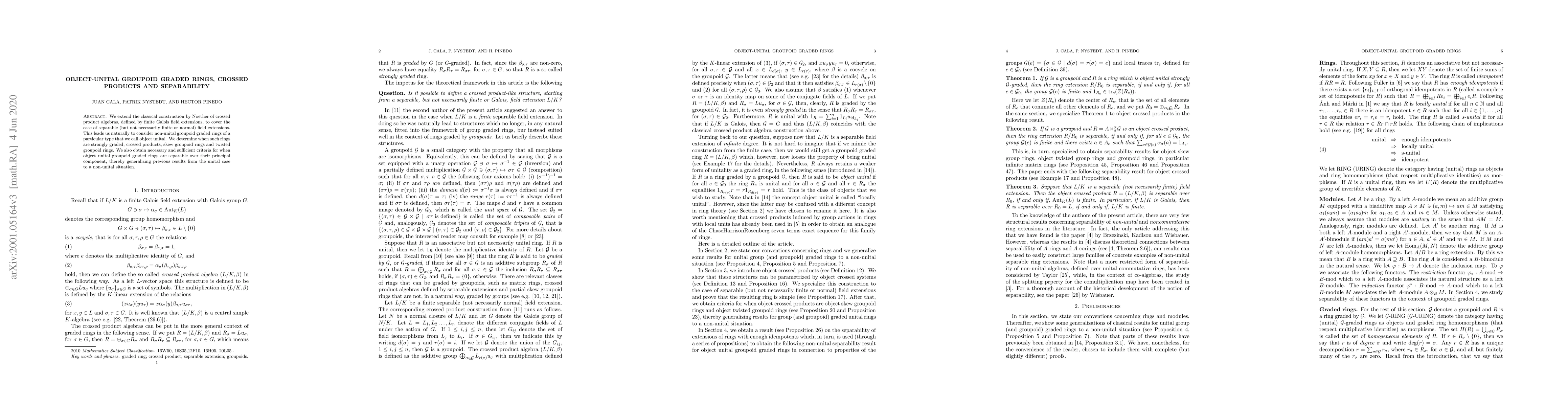 This paper extends Noether's crossed product algebras to separable field extensions and introduces object unital groupoid graded rings. It determines conditions for these rings to be strongly graded, crossed products, and separable over their principal component.