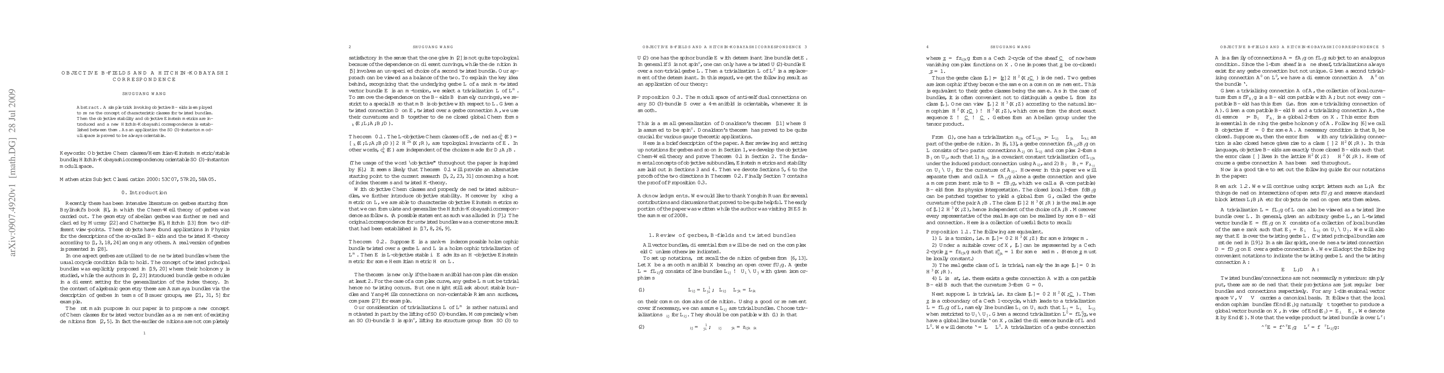 This paper refines the concept of characteristic classes for twisted bundles using objective B-fields, introduces objective stability and objective Einstein metrics, and establishes a new Hitchin-Kobayashi correspondence. An application proves the orientability of the SO(3)-instanton moduli space.