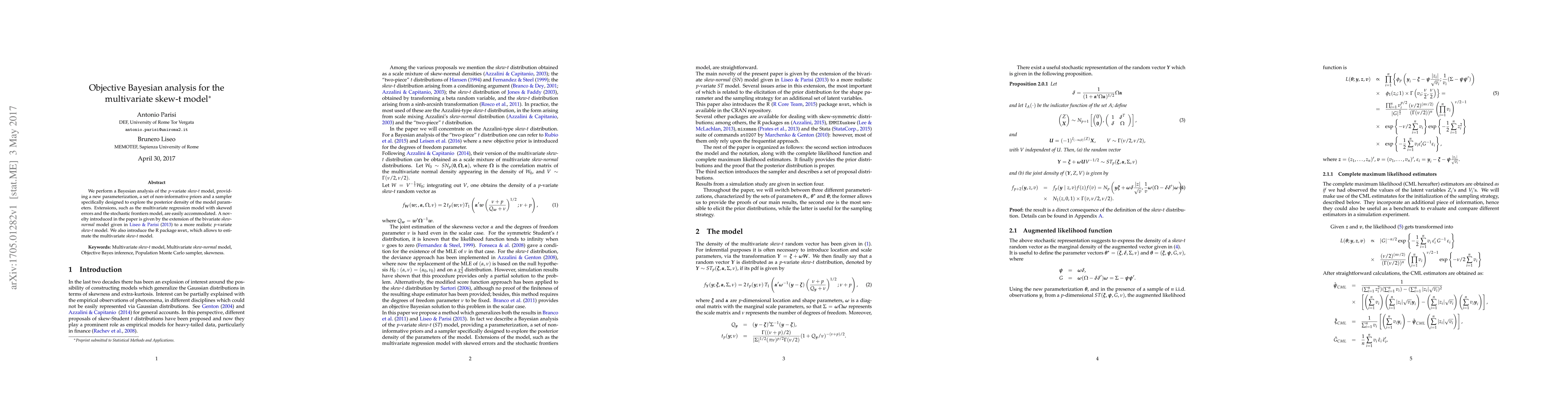 This paper presents an objective Bayesian analysis of the multivariate skew-t model, introducing a new parameterization and non-informative priors, along with a specialized sampler for estimating model parameters. The R package mvst is also introduced to facilitate the estimation of the proposed model.