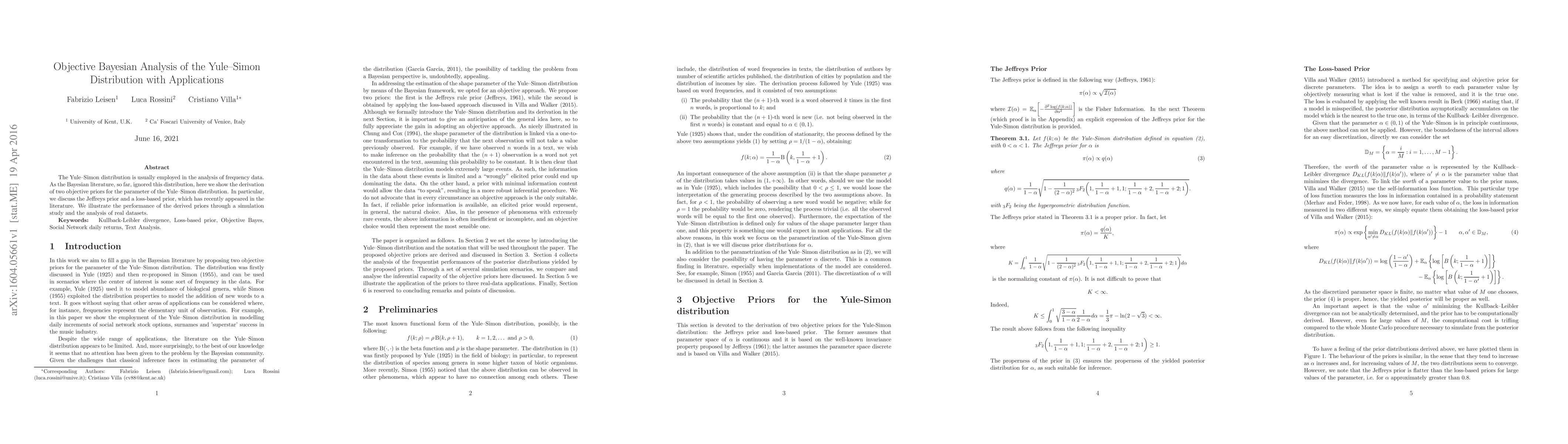 Researchers developed objective Bayesian priors for the Yule-Simon distribution, a statistical model used in frequency analysis, to improve its application in real-world datasets.