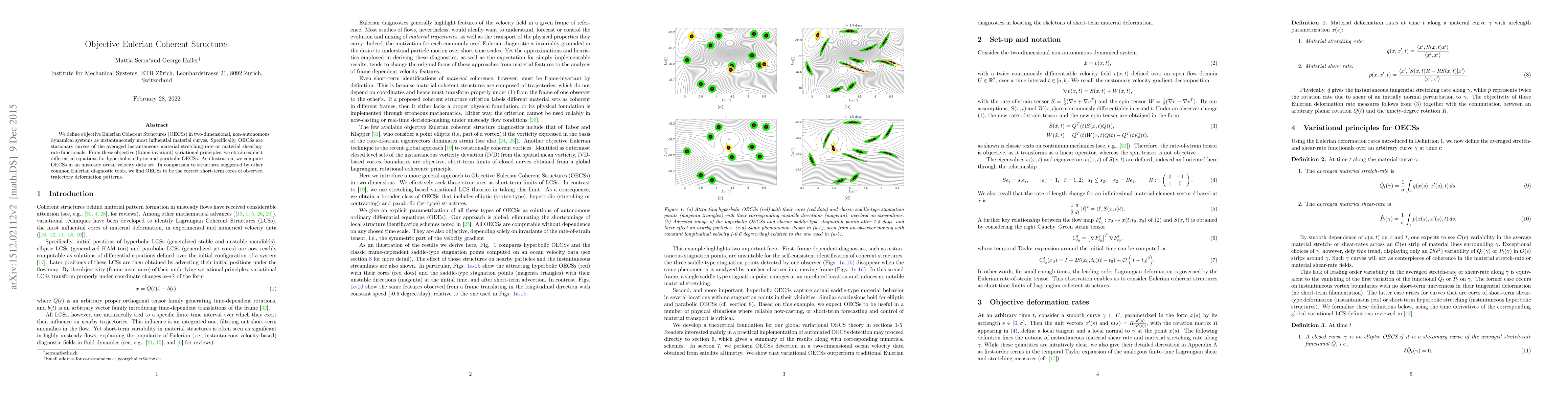 We define objective Eulerian Coherent Structures (OECSs) in two-dimensional, non-autonomous dynamical systems as instantaneously most influential material curves. Specifically, OECSs are stationary curves of the averaged instantaneous material stretching-rate or material shearing-rate functionals. From these objective (frame-invariant) variational principles, we obtain explicit differential equations for hyperbolic, elliptic and parabolic OECSs. As illustration, we compute OECSs in an unsteady ocean velocity data set. In comparison to structures suggested by other common Eulerian diagnostic tools, we find OECSs to be the correct short-term cores of observed trajectory deformation patterns.