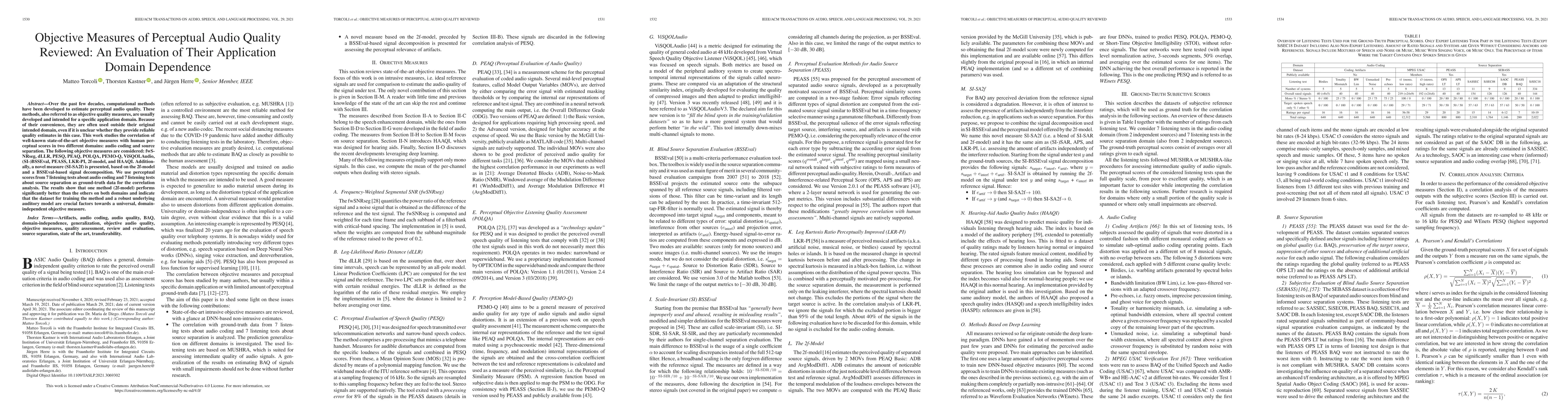 This paper evaluates the performance of various objective audio quality measures across two distinct application domains: audio coding and source separation. The results indicate that the 2f-model stands out as the most reliable measure, highlighting the importance of domain-specific training datasets and robust auditory models for developing universally applicable quality measures.