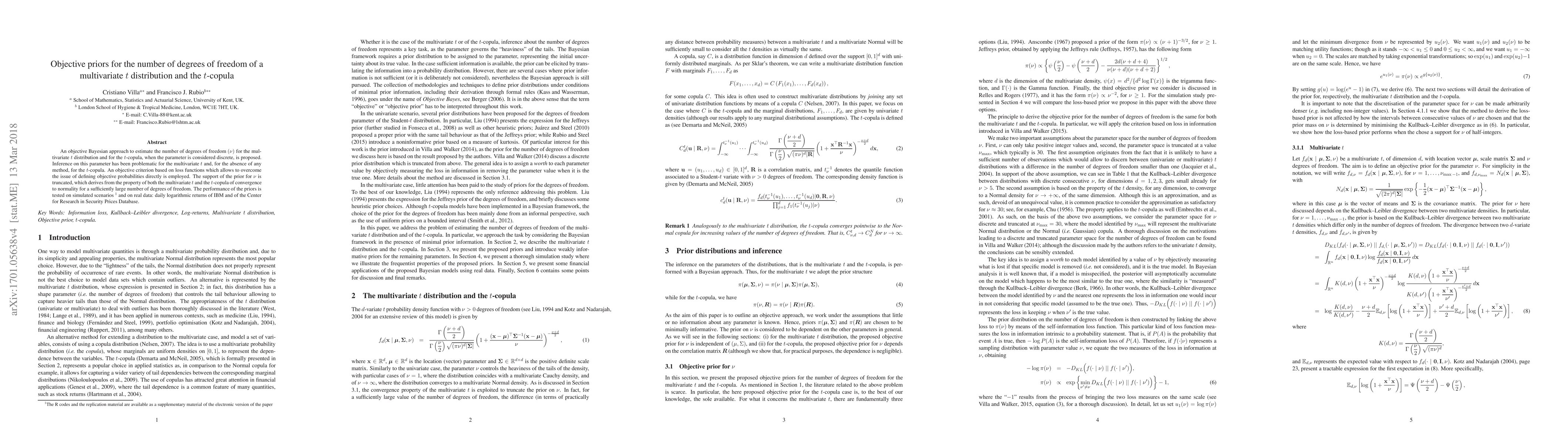 This paper proposes an objective Bayesian method to estimate the degrees of freedom for the multivariate t distribution and the t-copula, addressing the challenge of inference for these parameters. The approach uses an objective criterion based on loss functions and truncates the prior support to reflect convergence to normality, with performance tested on both simulated and real financial data.