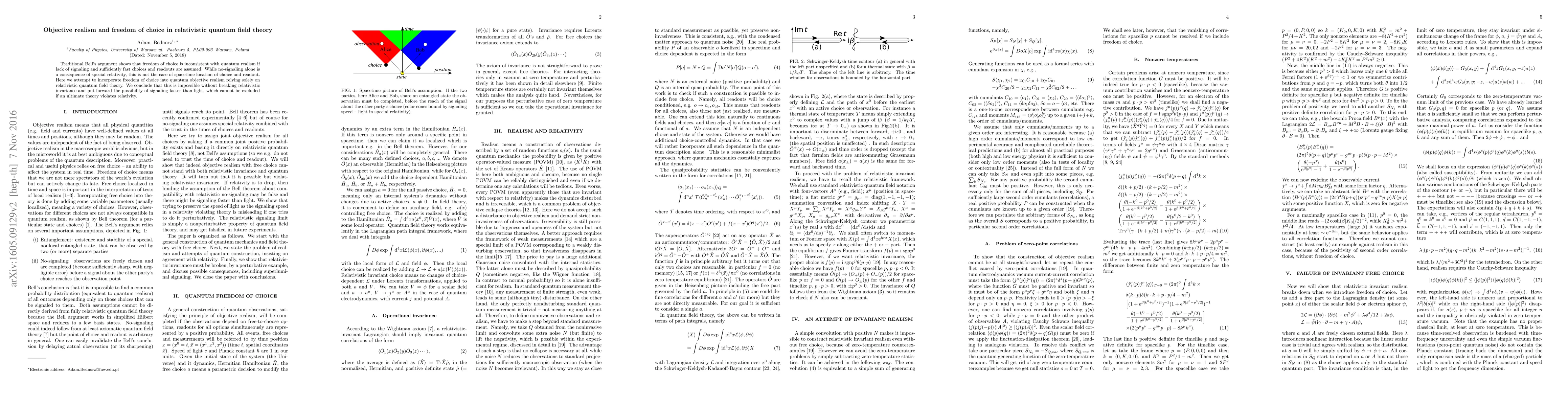 Traditional Bell's argument shows that freedom of choice is inconsistent with quantum realism if lack of signaling and sufficiently fast choices and readouts are assumed. While no-signaling alone is a consequence of special relativity, this is not the case of spacetime location of choice and readout. Here we attempt to incorporate freedom of choice into quantum objective realism relying solely on relativistic quantum field theory. We conclude that this is impossible without breaking relativistic invariance and put forward the possibility of signaling faster than light, which cannot be excluded if an ultimate theory violates relativity.