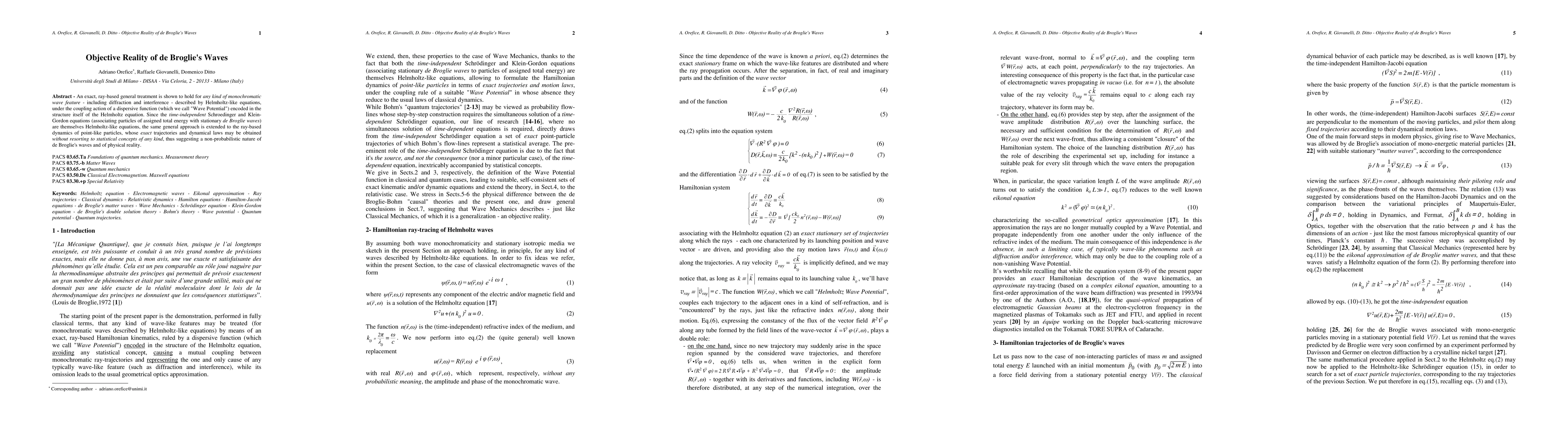An exact, ray-based general treatment is shown to hold for any kind of monochromatic wave feature - including diffraction and interference - described by Helmholtz-like equations, under the coupling action of a dispersive function (which we call "Wave Potential") encoded in the structure itself of the Helmholtz equation. Since the time-independent Schroedinger and Klein-Gordon equations (associating particles of assigned total energy with stationary de Broglie waves) are themselves Helmholtz-like equations, the same general approach is extended to the ray-based dynamics of point-like particles, whose exact trajectories and dynamical laws may be obtained without resorting to statistical concepts of any kind, thus suggesting a non-probabilistic nature of de Broglie's waves and of physical reality.
