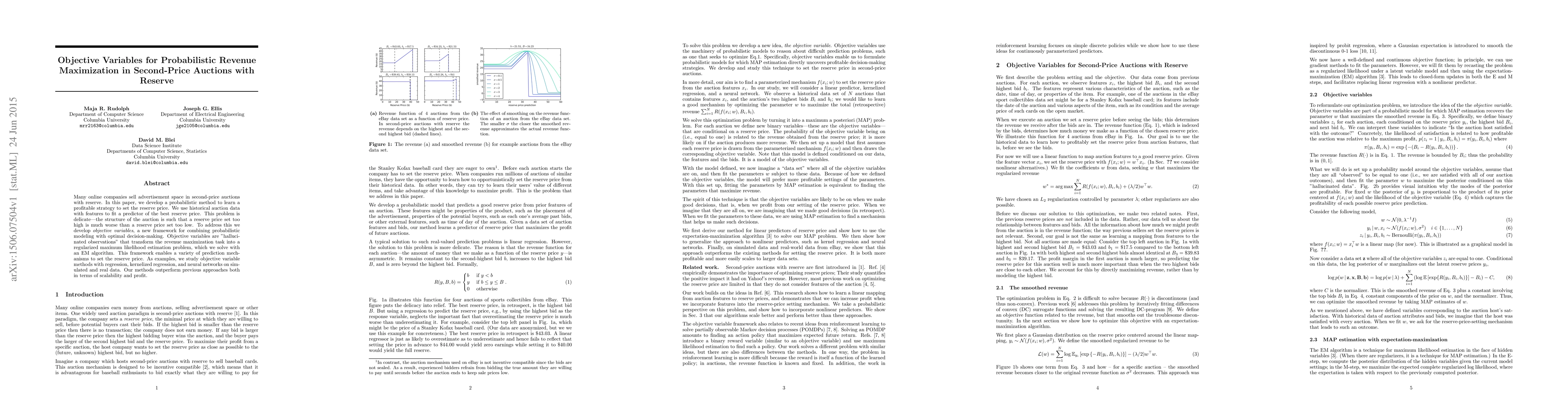 Many online companies sell advertisement space in second-price auctions with reserve. In this paper, we develop a probabilistic method to learn a profitable strategy to set the reserve price. We use historical auction data with features to fit a predictor of the best reserve price. This problem is delicate - the structure of the auction is such that a reserve price set too high is much worse than a reserve price set too low. To address this we develop objective variables, a new framework for combining probabilistic modeling with optimal decision-making. Objective variables are "hallucinated observations" that transform the revenue maximization task into a regularized maximum likelihood estimation problem, which we solve with an EM algorithm. This framework enables a variety of prediction mechanisms to set the reserve price. As examples, we study objective variable methods with regression, kernelized regression, and neural networks on simulated and real data. Our methods outperform previous approaches both in terms of scalability and profit.