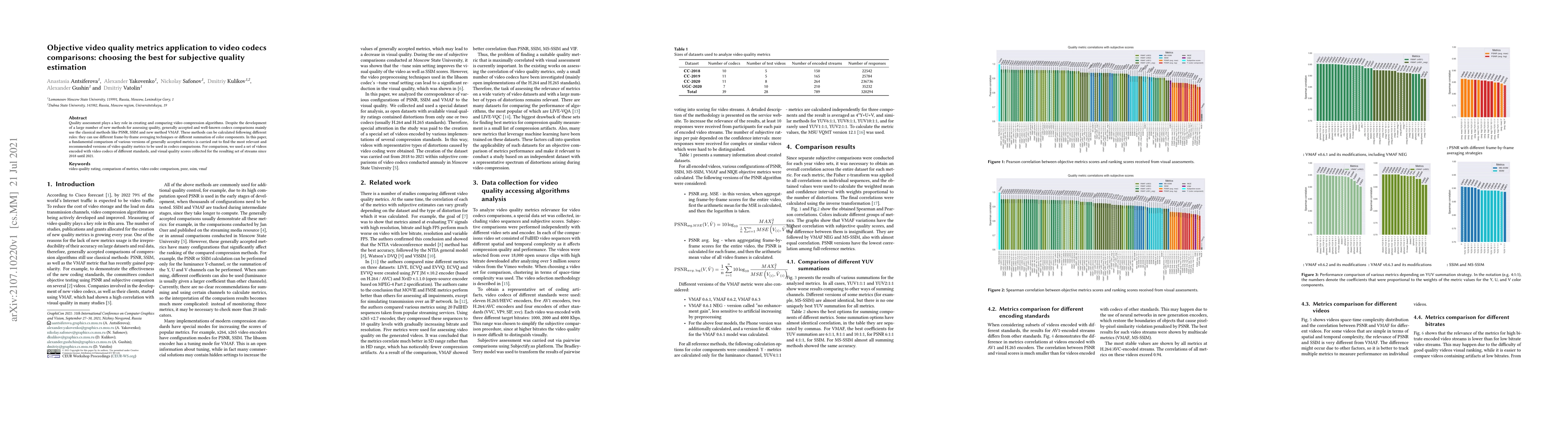 Researchers compared popular video quality metrics (PSNR, SSIM, VMAF) to determine the most relevant for codecs comparisons, finding that VMAF is the most effective in estimating subjective video quality.
