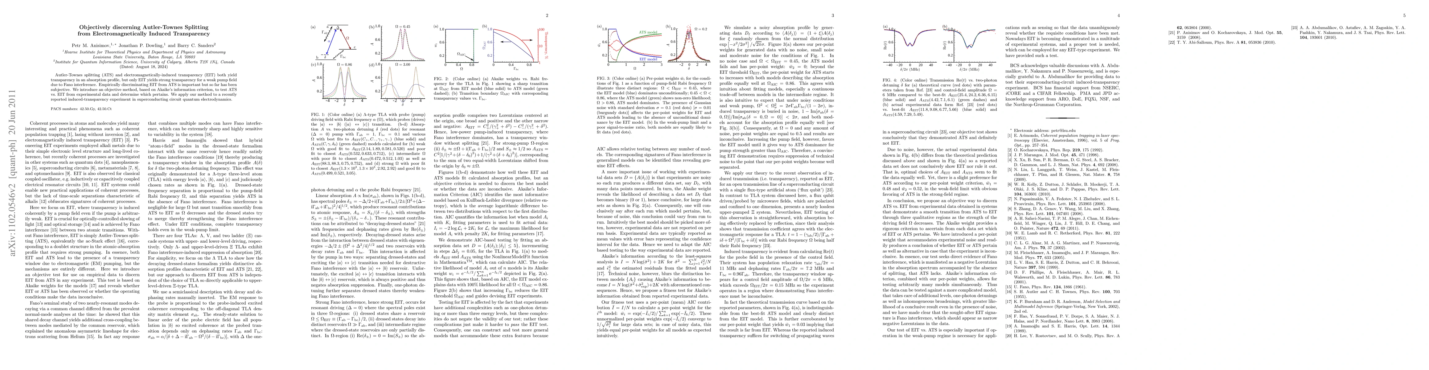 Autler-Townes splitting (ATS) and electromagnetically-induced transparency (EIT) both yield transparency in an absorption profile, but only EIT yields strong transparency for a weak pump field due to Fano interference. Empirically discriminating EIT from ATS is important but so far has been subjective. We introduce an objective method, based on Akaike's information criterion, to test ATS vs. EIT from experimental data and determine which pertains. We apply our method to a recently reported induced-transparency experiment in superconducting circuit quantum electrodynamics.