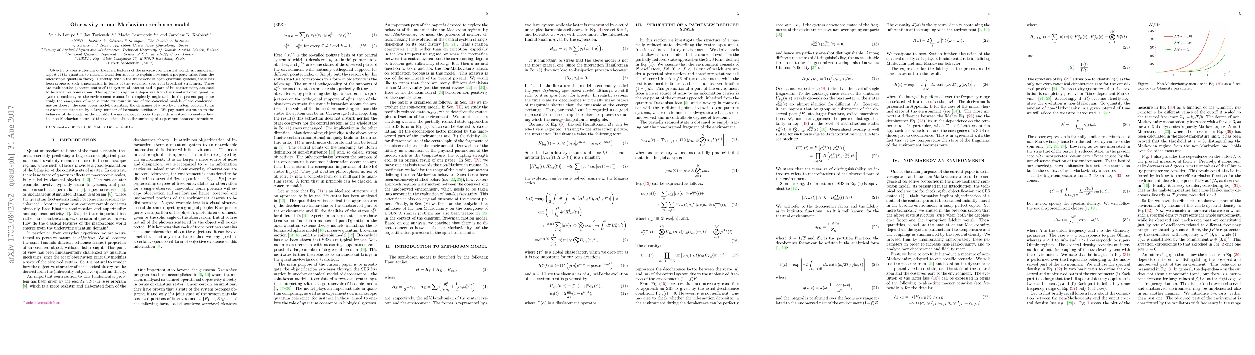 Objectivity constitutes one of the main features of the macroscopic classical world. An important aspect of the quantum-to-classical transition issue is to explain how such a property arises from the microscopic quantum world. Recently, within the framework of open quantum systems, there has been proposed such a mechanism in terms of the, so-called, Spectrum Broadcast Structures. These are multipartite quantum states of the system of interest and a part of its environment, assumed to be under an observation. This approach requires a departure from the standard open quantum systems methods, as the environment cannot be completely neglected. In the present work we study the emergence of such a state-structures in one of the canonical models of the condensed matter theory: Spin-boson model, describing the dynamics of a two-level system coupled to an environment made up by a large number of harmonic oscillators. We pay much attention to the behavior of the model in the non-Markovian regime, in order to provide a testbed to analyze how the non-Markovian nature of the evolution affects the surfacing of a spectrum broadcast structure.