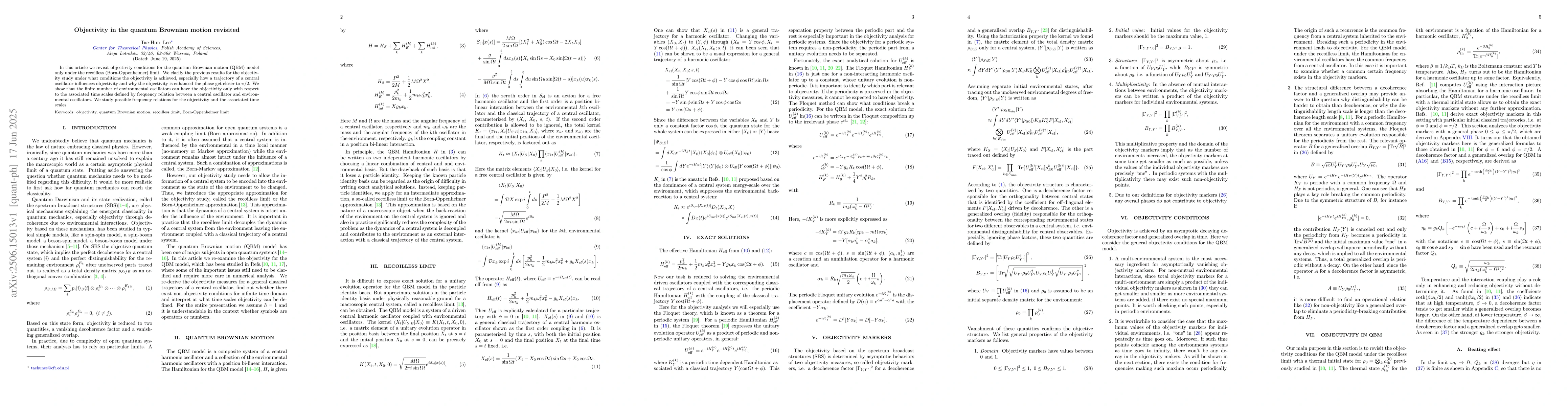 In this article we revisit objectivity conditions for the quantum Brownian motion (QBM) model only under the recoilless (Born-Oppenheimer) limit. We clarify the previous results for the objectivity study under what conditions the objectivity is achieved, especially how a trajectory of a central oscillator influences objectivity and why the objectivity is enhanced the phase get closer to $\pi/2$. We show that the finite number of environmental oscillators can have the objectivity only with respect to the associated time scales defined by frequency relation between a central oscillator and environmental oscillators. We study possible frequency relations for the objectivity and the associated time scales.