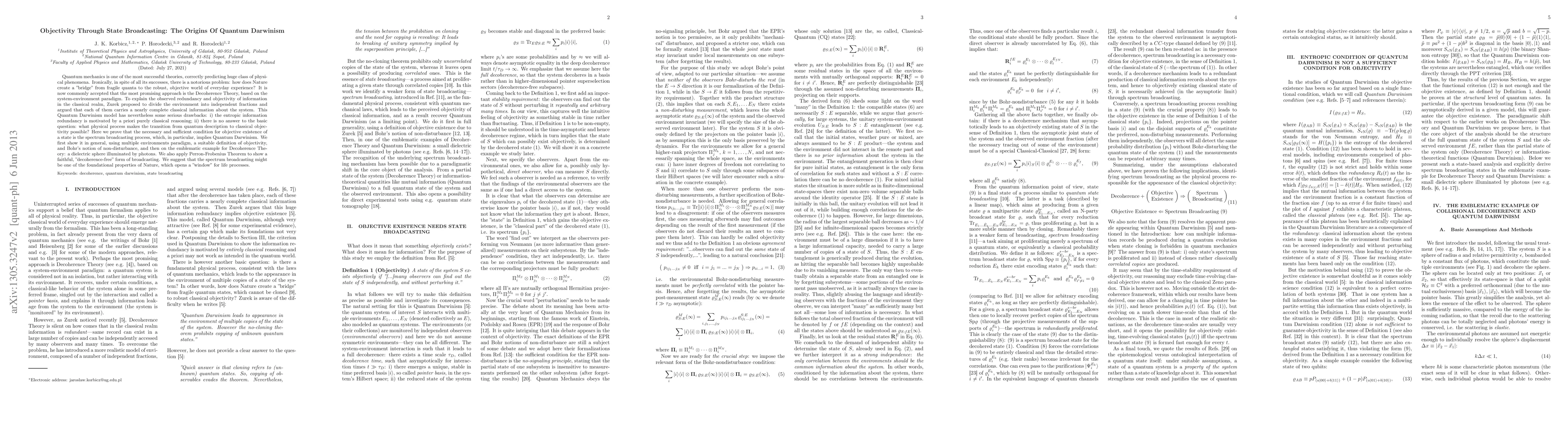 This paper explores the origins of Quantum Darwinism, proposing that the spectrum broadcasting process is the necessary and sufficient condition for the objective existence of a state, bridging quantum mechanics to classical reality. It applies this theory to a dielectric sphere illuminated by photons, suggesting spectrum broadcasting as a foundational property of nature.