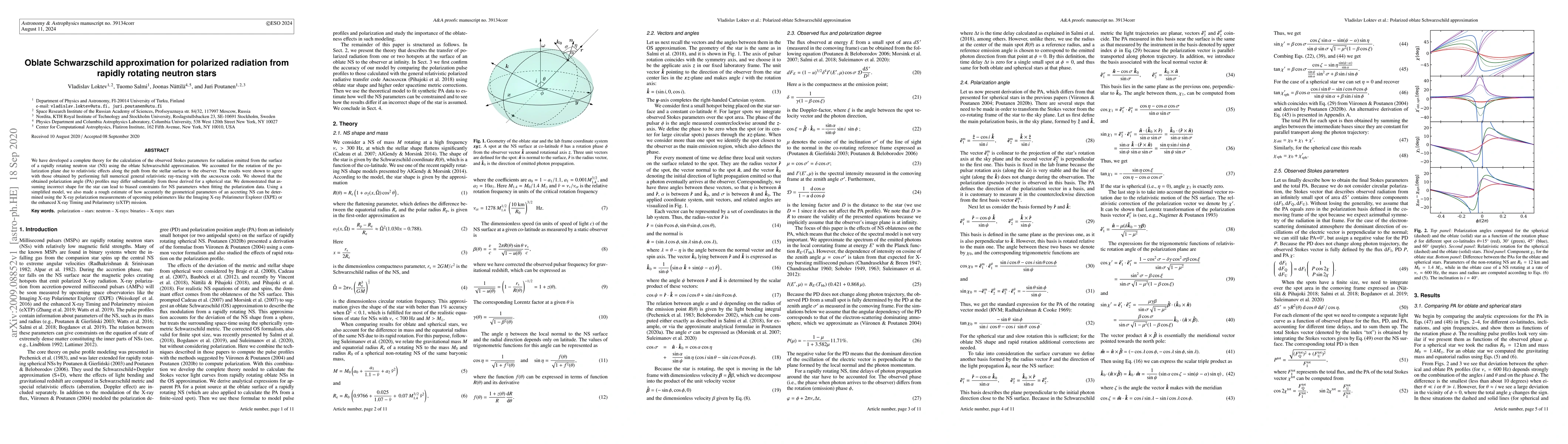 We have developed a complete theory for the calculation of the observed Stokes parameters for radiation emitted from the surface of a rapidly rotating neutron star (NS) using the oblate Schwarzschild approximation. We accounted for the rotation of the polarization plane due to relativistic effects along the path from the stellar surface to the observer. The results were shown to agree with those obtained by performing full numerical general relativistic ray-tracing with the \textsc{arcmancer} code. We showed that the obtained polarization angle (PA) profiles may differ substantially from those derived for a spherical star. We demonstrated that assuming incorrect shape for the star can lead to biased constraints for NS parameters when fitting the polarization data. Using a simplified model, we also made a rough estimate of how accurately the geometrical parameters of an accreting NS can be determined using the X-ray polarization measurements of upcoming polarimeters like the Imaging X-ray Polarimeter Explorer (IXPE) or the enhanced X-ray Timing and Polarimetry (eXTP) mission.