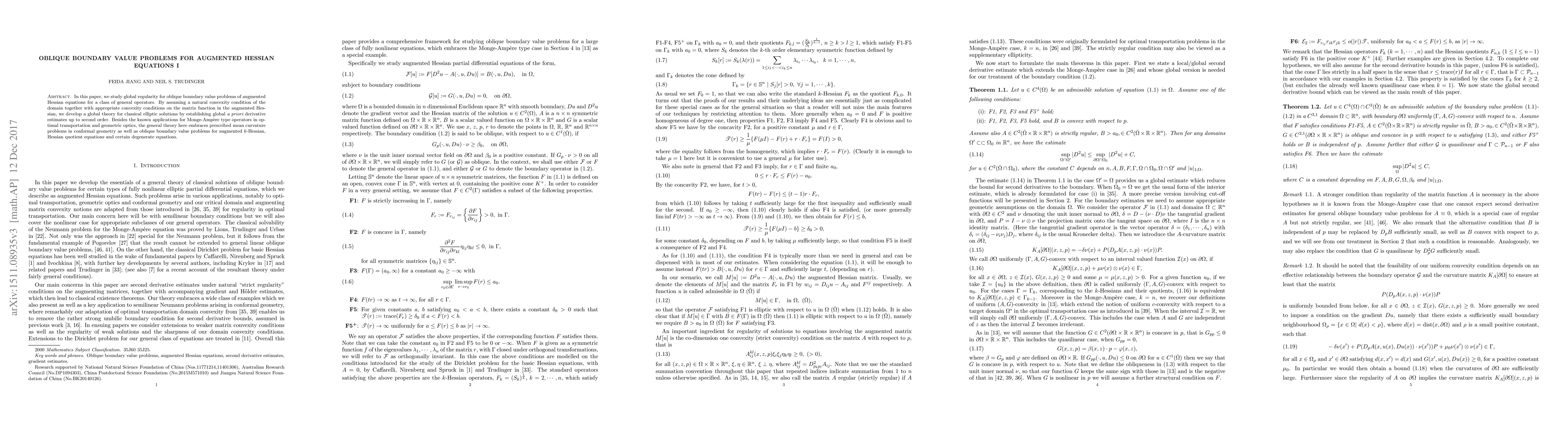 This paper develops a global regularity theory for oblique boundary value problems of augmented Hessian equations under convexity conditions, establishing global a priori derivative estimates up to second order. It extends applications to Monge-Ampère operators, prescribed mean curvature problems, and various Hessian-related equations.