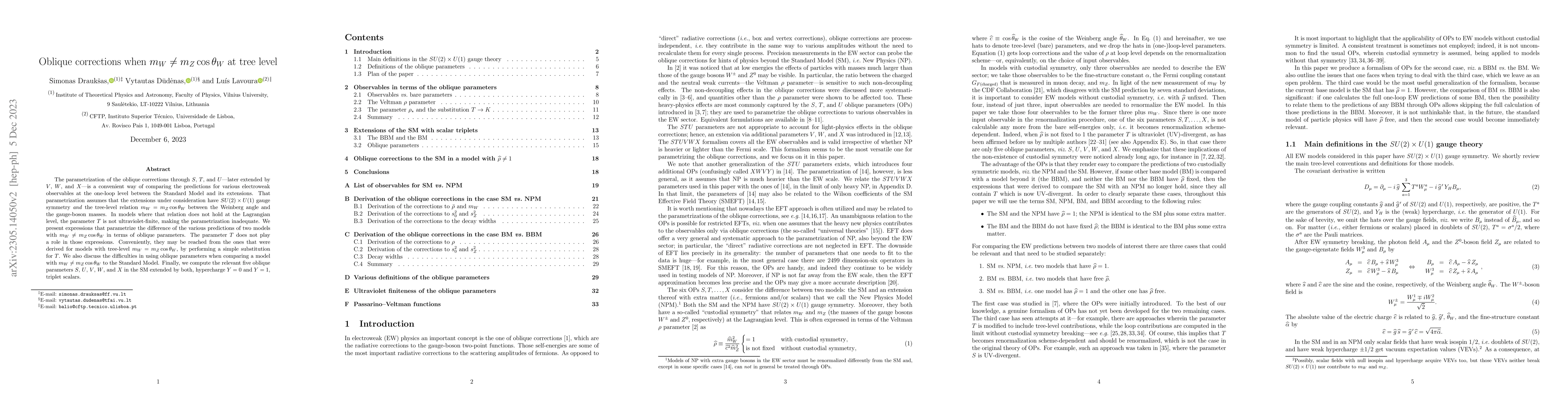 The parametrization of the oblique corrections through $S$, $T$, and $U$ -- later extended by $V$, $W$, and $X$ -- is a convenient way of comparing the predictions for various electroweak observables at the one-loop level between the Standard Model and its extensions. That parametrization assumes that the extensions under consideration have ${SU(2)\times U(1)}$ gauge symmetry \emph{and} the tree-level relation $m_W = m_Z \cos{\theta_W}$ between the Weinberg angle and the gauge-boson masses. In models where that relation does not hold at the Lagrangian level, the parameter $T$ is not ultraviolet-finite, making the parametrization inadequate. We present expressions that parametrize the difference of the various predictions of two models with $m_W \neq m_Z \cos{\theta_W}$ in terms of oblique parameters. The parameter $T$ does not play a role in those expressions. Conveniently, they may be reached from the ones that were derived for models with tree-level $m_W = m_Z \cos{\theta_W}$, by performing a simple substitution for $T$. We also discuss the difficulties in using oblique parameters when comparing a model with $m_W \neq m_Z \cos{\theta_W}$ to the Standard Model. Finally, we compute the relevant five oblique parameters $S$, $U$, $V$, $W$, and $X$ in the SM extended by both, hypercharge $Y=0$ and $Y=1$, triplet scalars.