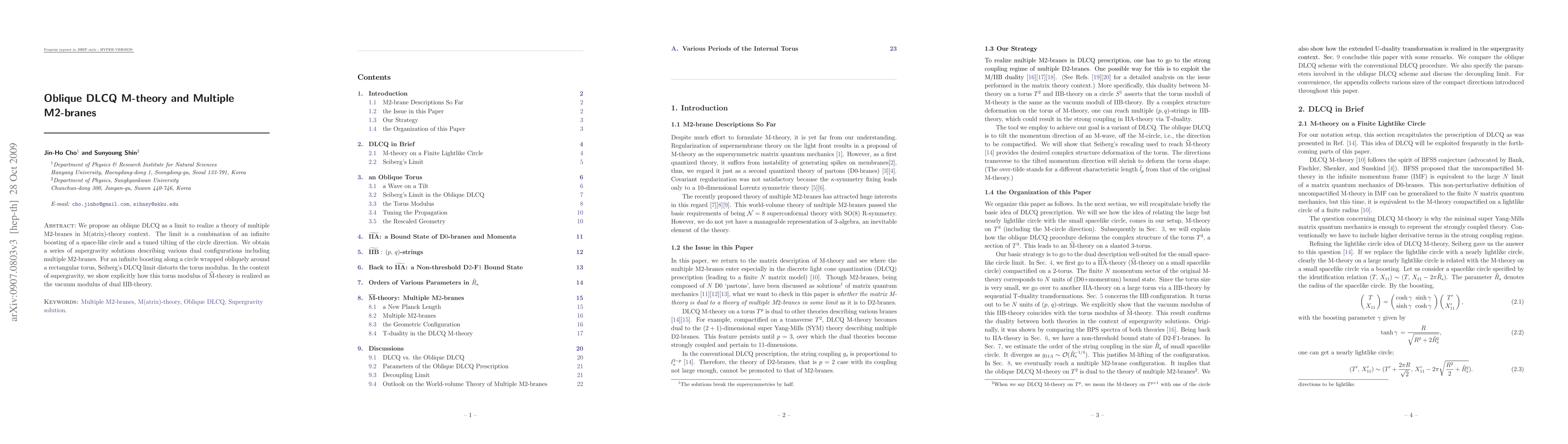 We propose an oblique DLCQ as a limit to realize a theory of multiple M2-branes in M(atrix)-theory context. The limit is a combination of an infinite boosting of a space-like circle and a tuned tilting of the circle direction. We obtain a series of supergravity solutions describing various dual configurations including multiple M2-branes. For an infinite boosting along a circle wrapped obliquely around a rectangular torus, Seiberg's DLCQ limit distorts the torus modulus. In the context of supergravity, we show explicitly how this torus modulus of $\widetilde{\text M}$-theory is realized as the vacuum modulus of dual IIB-theory.