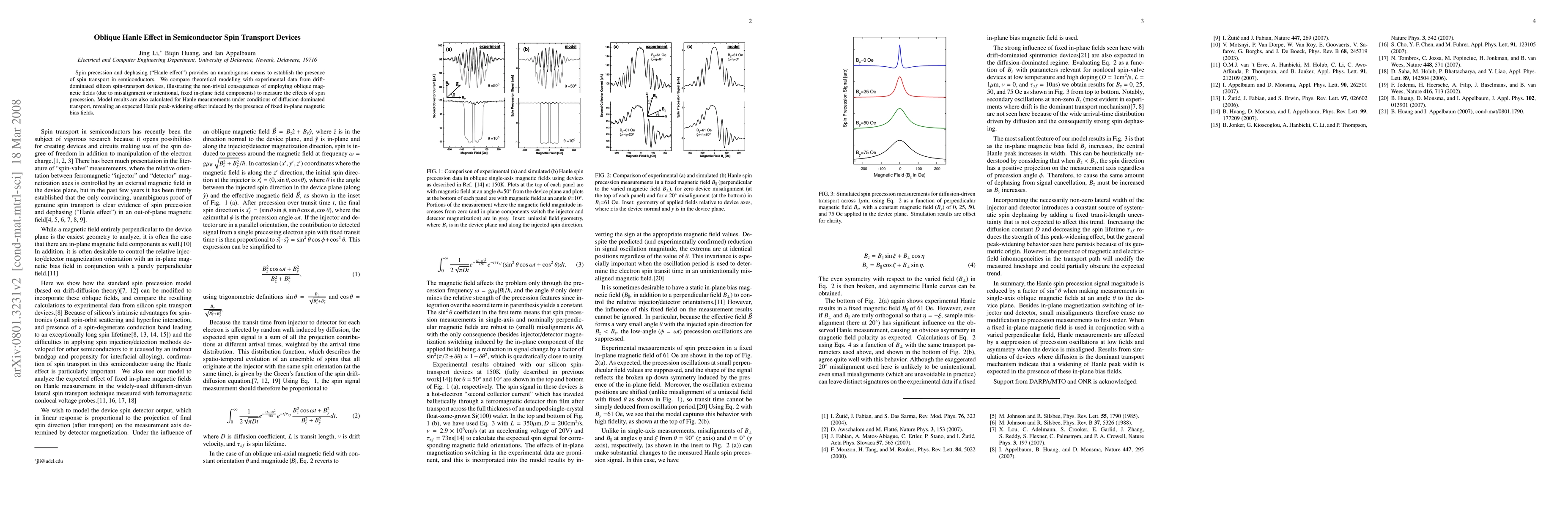 This paper investigates the oblique Hanle effect in semiconductor spin transport devices, comparing theoretical models with experimental data on silicon devices. It highlights the impact of oblique magnetic fields on spin precession and dephasing, revealing peak-widening effects under diffusion-dominated transport conditions.