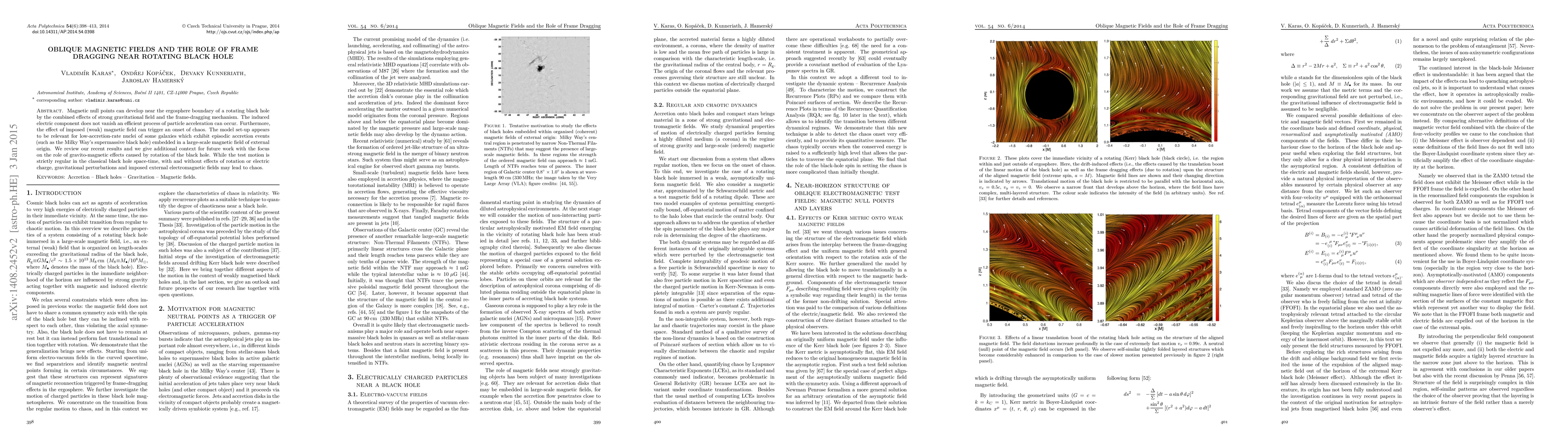 This paper investigates how oblique magnetic fields near the ergosphere boundary of a rotating black hole can lead to magnetic null points, particle acceleration, and chaos due to the combined effects of frame-dragging and gravitational fields. The findings are relevant for understanding episodic accretion events in low-accretion-rate galactic nuclei.