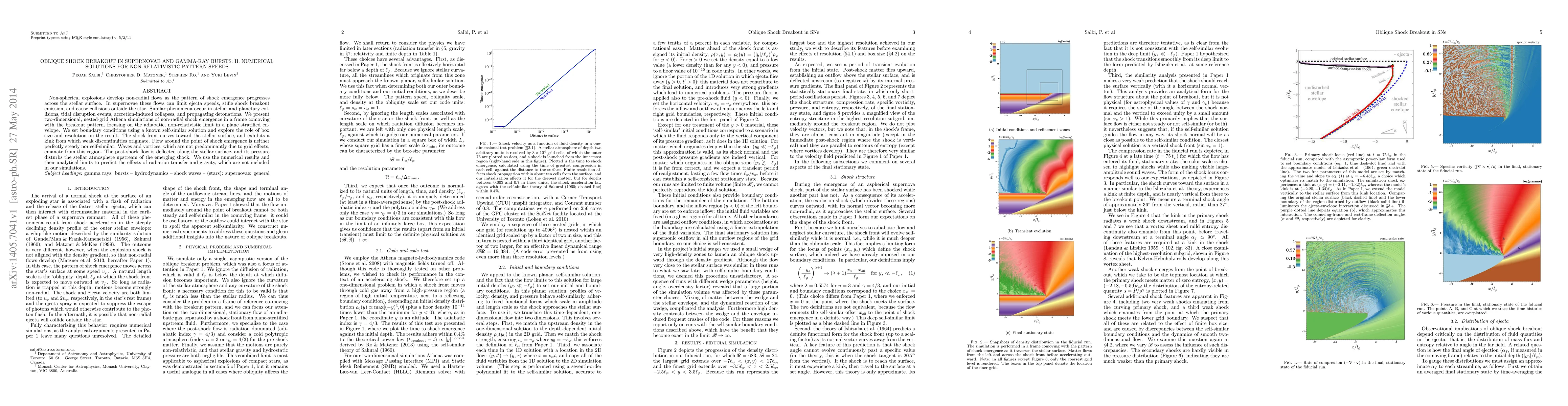 Non-spherical explosions develop non-radial flows as the pattern of shock emergence progresses across the stellar surface. In supernovae these flows can limit ejecta speeds, stifle shock breakout emission, and cause collisions outside the star. Similar phenomena occur in stellar and planetary collisions, tidal disruption events, accretion-induced collapses, and propagating detonations. We present two-dimensional, nested-grid Athena simulations of non-radial shock emergence in a frame comoving with the breakout pattern, focusing on the adiabatic, non-relativistic limit in a plane stratified envelope. We set boundary conditions using a known self-similar solution and explore the role of box size and resolution on the result. The shock front curves toward the stellar surface, and exhibits a kink from which weak discontinuities originate. Flow around the point of shock emergence is neither perfectly steady nor self-similar. Waves and vortices, which are not predominantly due to grid effects, emanate from this region. The post-shock flow is deflected along the stellar surface, and its pressure disturbs the stellar atmosphere upstream of the emerging shock. We use the numerical results and their analytical limits to predict the effects of radiation transfer and gravity, which are not included in our simulations.