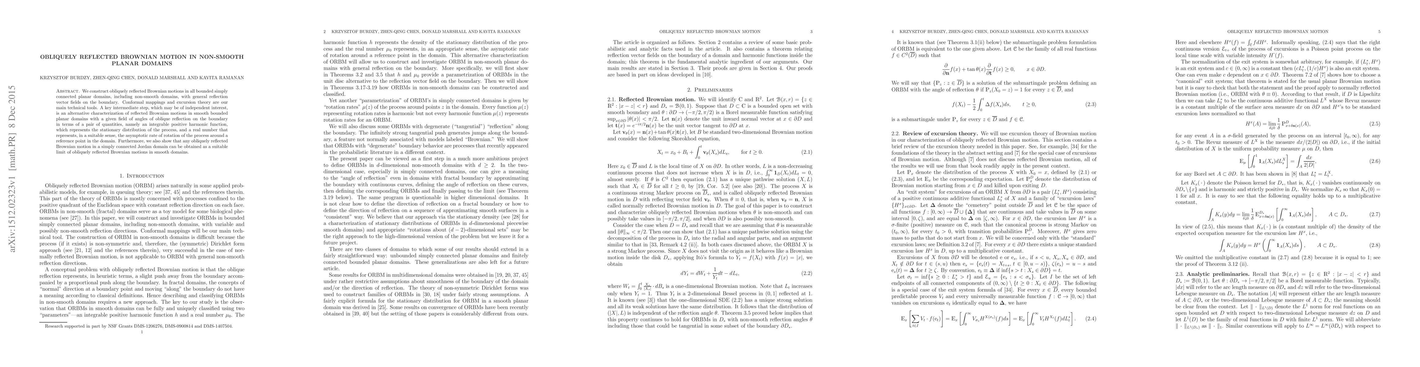 This paper constructs obliquely reflected Brownian motions in non-smooth planar domains using conformal mappings and excursion theory. It provides an alternative characterization of these motions in smooth domains through harmonic functions and rotation rates, and demonstrates that any such motion in a non-smooth domain can be approached as a limit from smooth domains.