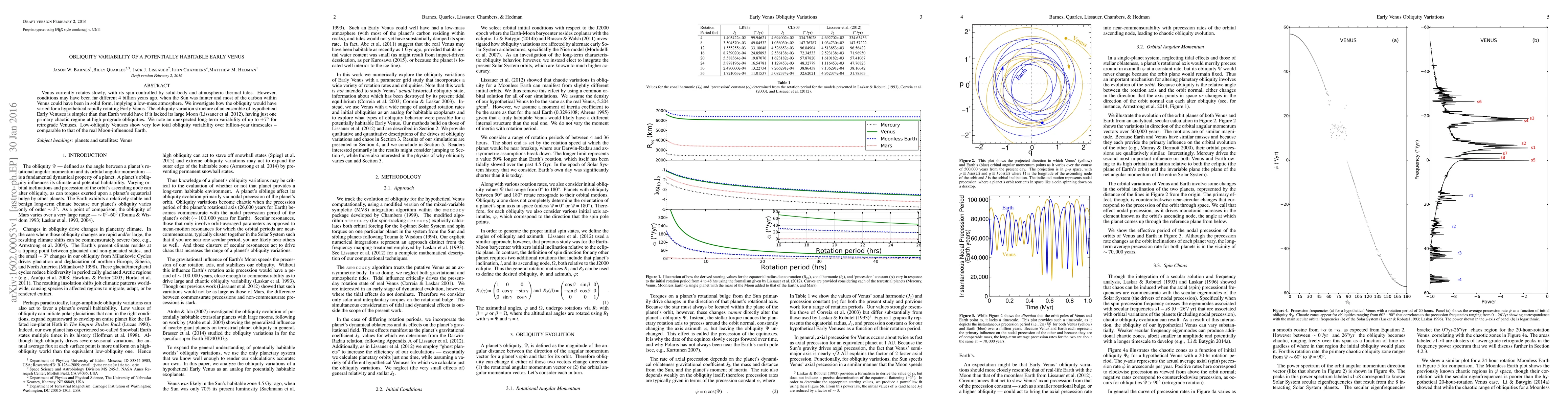 The paper presents detailed numerical simulations of Early Venus obliquity variations, revealing unique chaotic behavior in retrograde rotators and comparing it to Moonless Earth models.