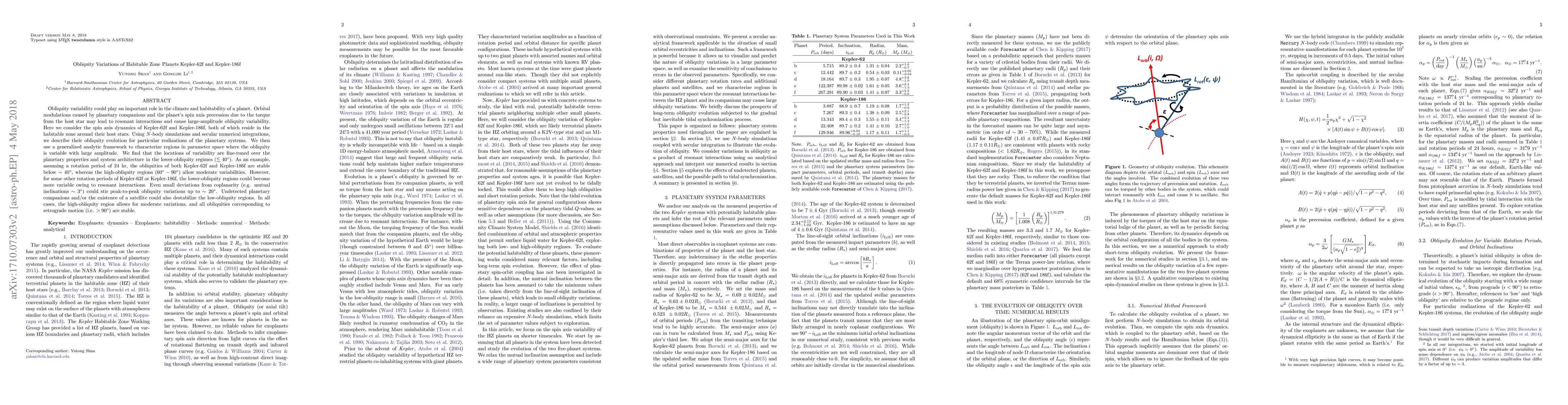 This paper investigates the obliquity variability of Kepler-62f and Kepler-186f, two habitable zone planets, using N-body simulations and secular integrations. It finds that while the obliquities are stable below 40°, small deviations in planetary alignments or the presence of undetected companions can cause significant variability. High-obliquity regions allow moderate variations, and retrograde obliquities are stable.