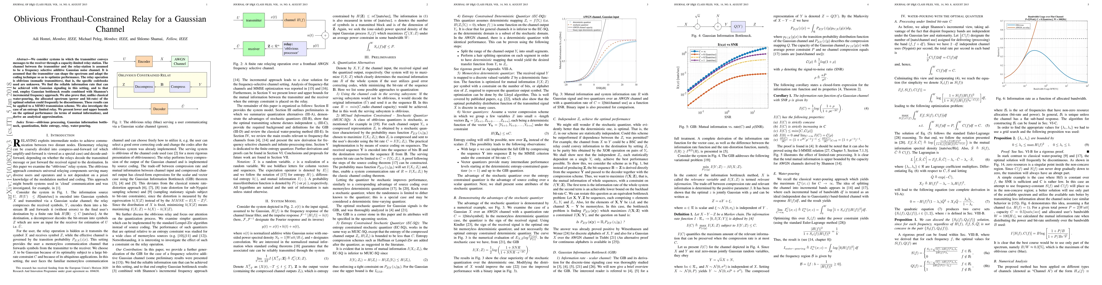 We consider systems in which the transmitter conveys messages to the receiver through a capacity-limited relay station. The channel between the transmitter and the relay-station is assumed to be a frequency selective additive Gaussian noise channel. It is assumed that the transmitter can shape the spectrum and adapt the coding technique so as to optimize performance. The relay operation is oblivious (nomadic transmitters), that is, the specific codebooks used are unknown. We find the reliable information rate that can be achieved with Gaussian signaling in this setting, and to that end, employ Gaussian bottleneck results combined with Shannon's incremental frequency approach. We also prove that, unlike classical water-pouring, the allocated spectrum (power and bit-rate) of the optimal solution could frequently be discontinuous. These results can be applied to a MIMO transmission scheme. We also investigate the case of an entropy limited relay. We present lower and upper bounds on the optimal performance (in terms of mutual information), and derive an analytical approximation.