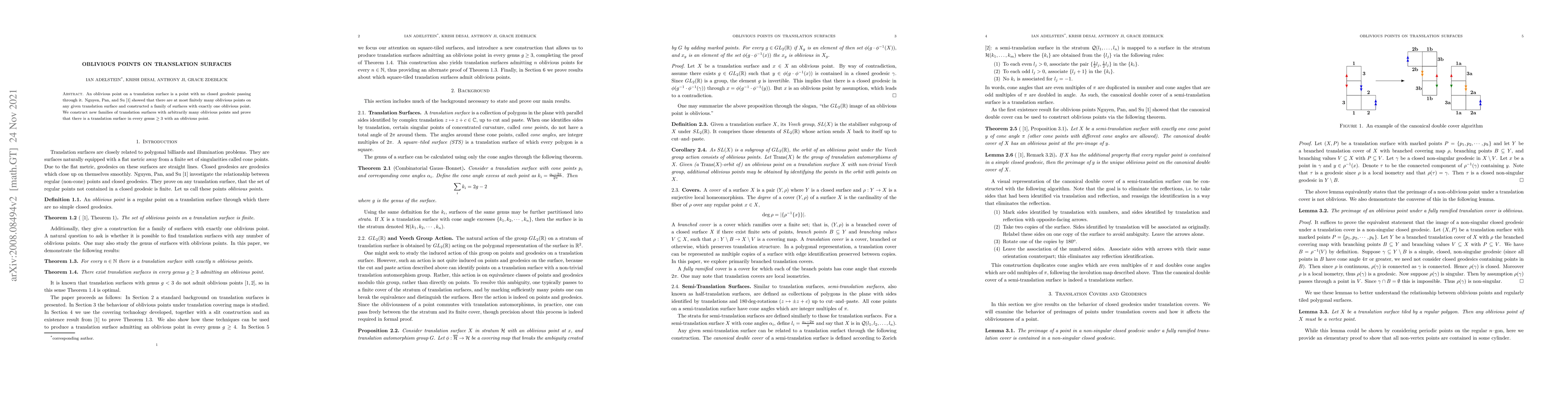 This paper constructs new families of translation surfaces with an arbitrary number of oblivious points, where an oblivious point is one without any closed geodesic passing through it. It also proves the existence of translation surfaces in genus $\ge3$ containing at least one oblivious point.