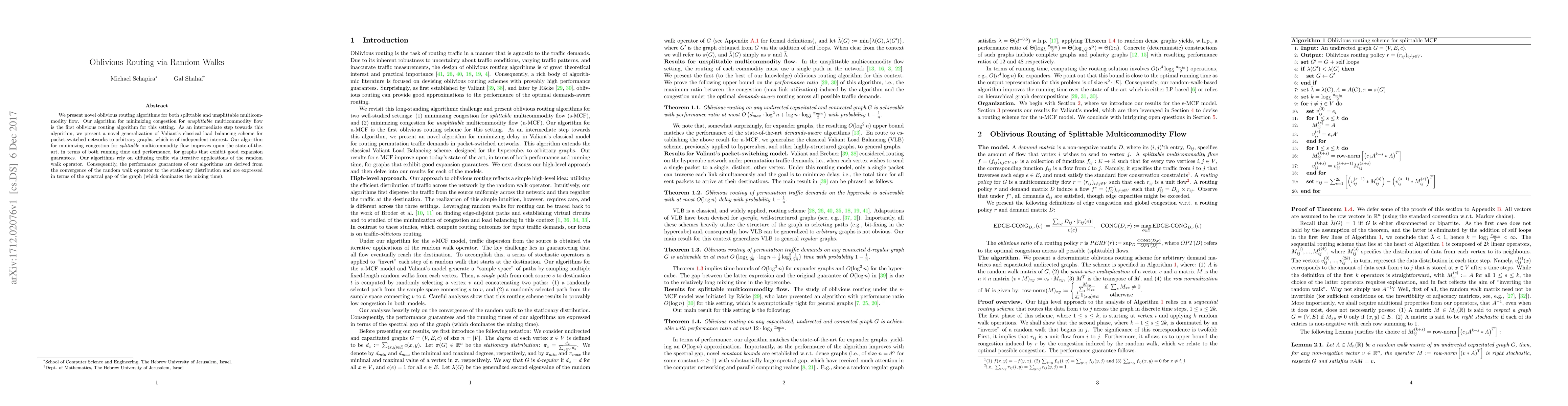 This paper introduces oblivious routing algorithms for both splittable and unsplittable multicommodity flow, utilizing random walks to minimize congestion. The unsplittable flow algorithm is the first of its kind, while the splittable flow algorithm improves upon existing methods, leveraging the convergence properties of random walks on graph spectral gaps.