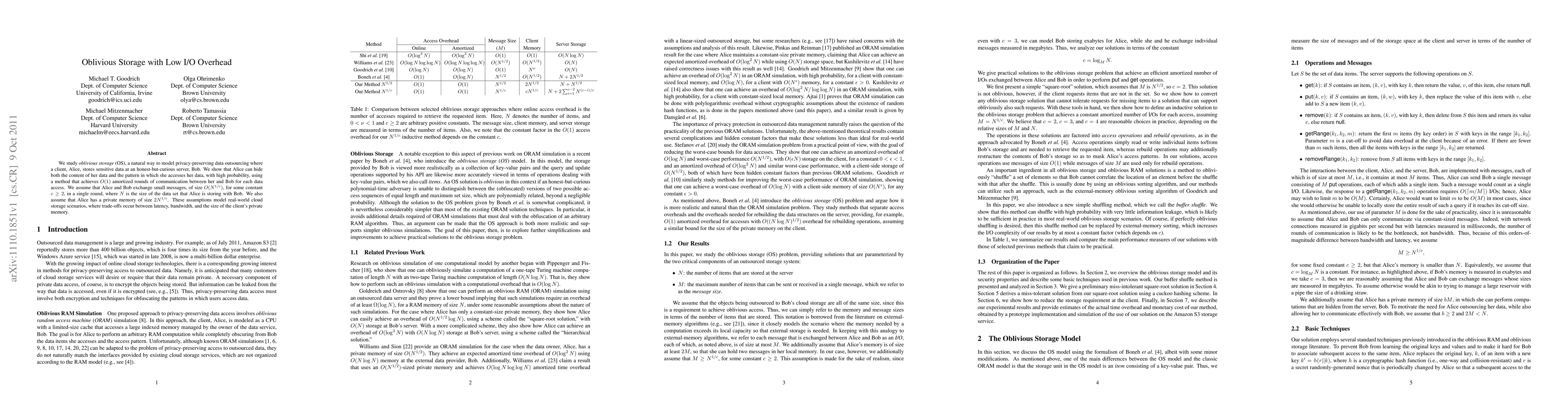 Researchers demonstrate a method for oblivious storage that allows clients to hide both data content and access patterns with high probability, achieving O(1) rounds of communication for each data access.