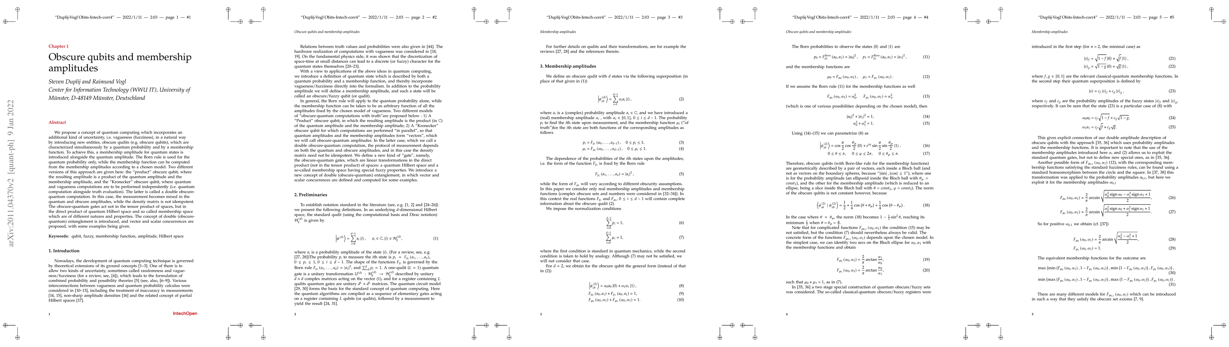 This paper introduces "obscure qudits," a novel concept in quantum computing that combines quantum probability with membership functions, termed membership amplitudes. It proposes two versions: "product" and "Kronecker" obscure qubits, with the latter enabling double obscure-quantum computation, introducing double entanglement and non-idempotent density matrices.
