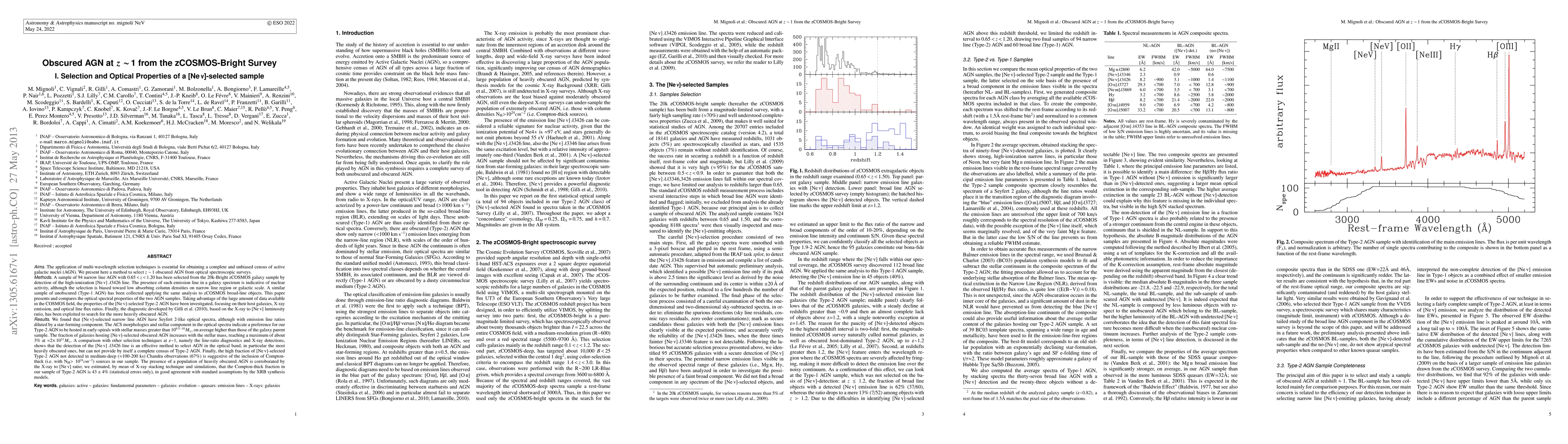 This study selects 94 Type-2 AGN from the zCOSMOS-Bright survey based on the [NeV]3426 line, finding they exhibit Seyfert 2-like spectra and are hosted by early-type spirals with high stellar masses. The research suggests that the [NeV] line effectively identifies heavily obscured AGN, with an estimated Compton-thick fraction of 43±4%.