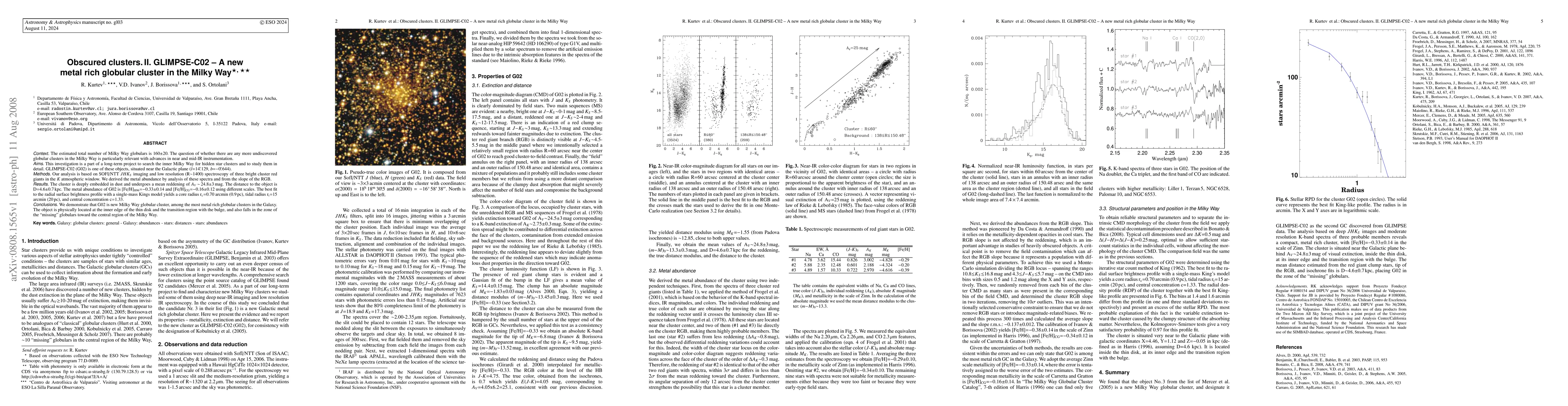 A new metal-rich globular cluster, GLIMPSE-C02, is discovered in the Milky Way with a core radius of 0.9pc, making it one of the most metal-rich clusters in the Galaxy.