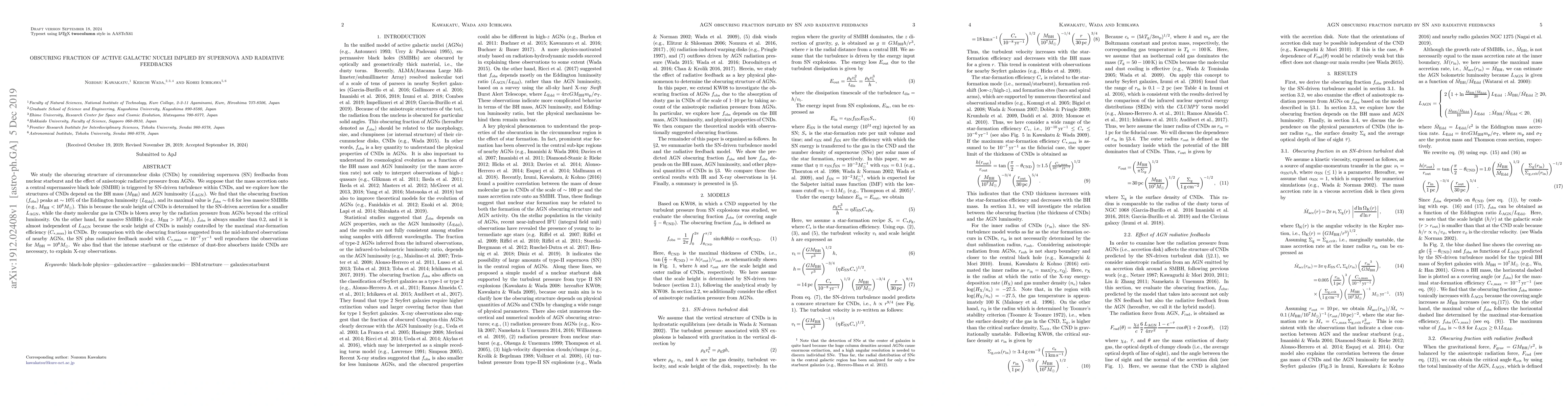 A study suggests that supernova feedbacks from nuclear starbursts and radiative pressure from active galactic nuclei create an obscuring fraction of up to 60% in circumnuclear disks around supermassive black holes.