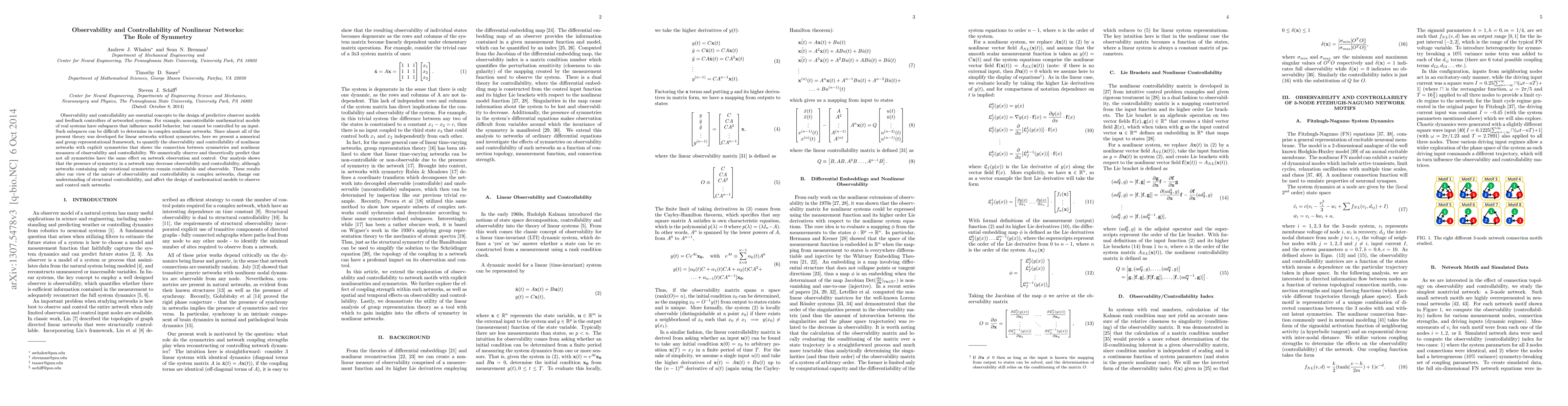 This paper develops a framework to analyze observability and controllability in nonlinear networks with symmetries, revealing that not all symmetries equally affect these properties. It finds that while rotational symmetries maintain controllability and observability, other symmetries can reduce these properties, reshaping our understanding of structural controllability in complex networks.