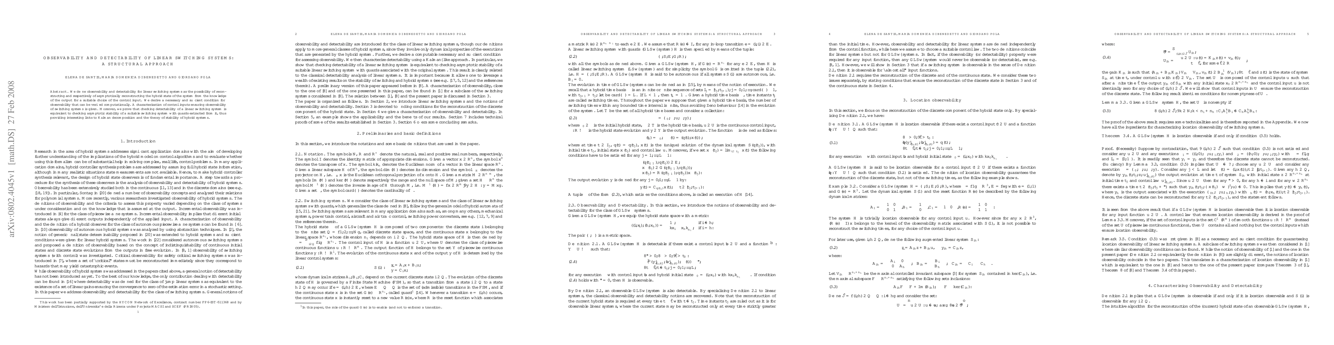 Researchers developed a method to determine if linear switching systems can be reconstructed from their outputs, finding that detectability is equivalent to checking the stability of a related system.