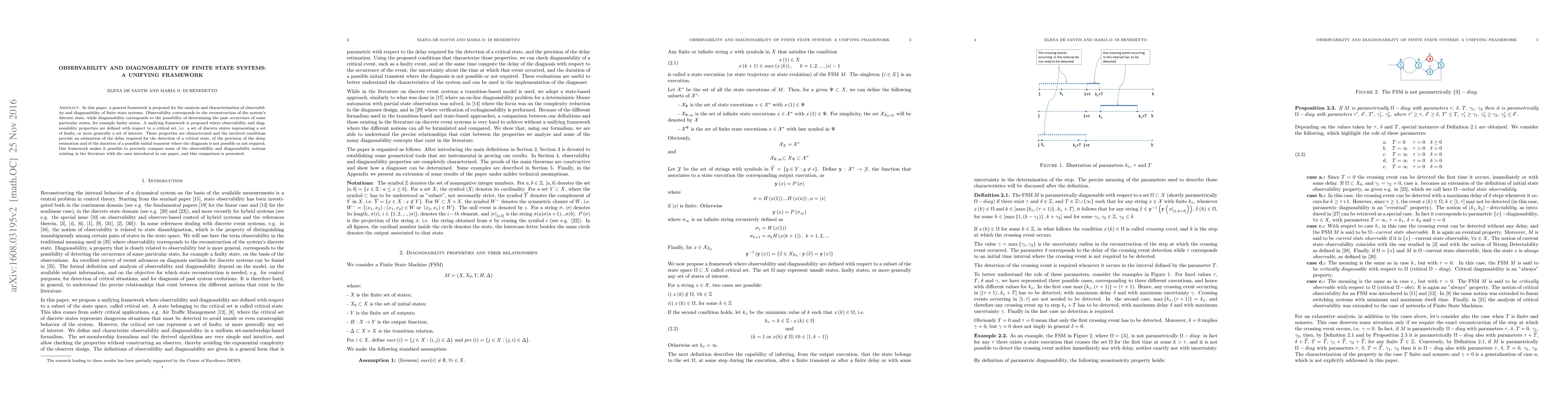 This paper proposes a unifying framework for analyzing observability and diagnosability in finite state systems, defining these properties with respect to a critical set of states. The framework characterizes the conditions for detecting faults and estimating the delay in diagnosis.