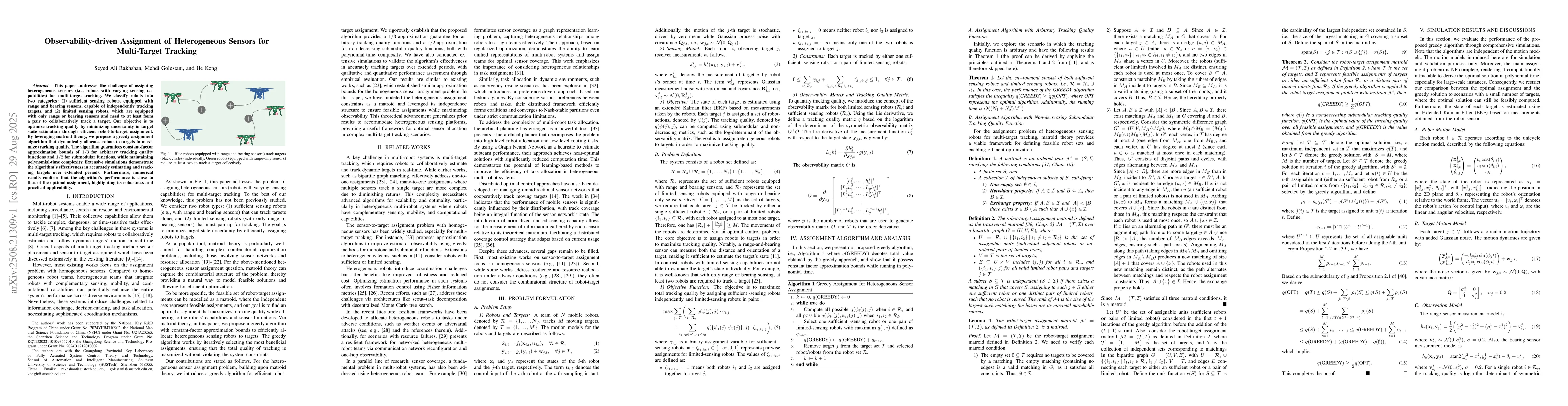 This paper addresses the challenge of assigning heterogeneous sensors (i.e., robots with varying sensing capabilities) for multi-target tracking. We classify robots into two categories: (1) sufficient sensing robots, equipped with range and bearing sensors, capable of independently tracking targets, and (2) limited sensing robots, which are equipped with only range or bearing sensors and need to at least form a pair to collaboratively track a target. Our objective is to optimize tracking quality by minimizing uncertainty in target state estimation through efficient robot-to-target assignment. By leveraging matroid theory, we propose a greedy assignment algorithm that dynamically allocates robots to targets to maximize tracking quality. The algorithm guarantees constant-factor approximation bounds of 1/3 for arbitrary tracking quality functions and 1/2 for submodular functions, while maintaining polynomial-time complexity. Extensive simulations demonstrate the algorithm's effectiveness in accurately estimating and tracking targets over extended periods. Furthermore, numerical results confirm that the algorithm's performance is close to that of the optimal assignment, highlighting its robustness and practical applicability.