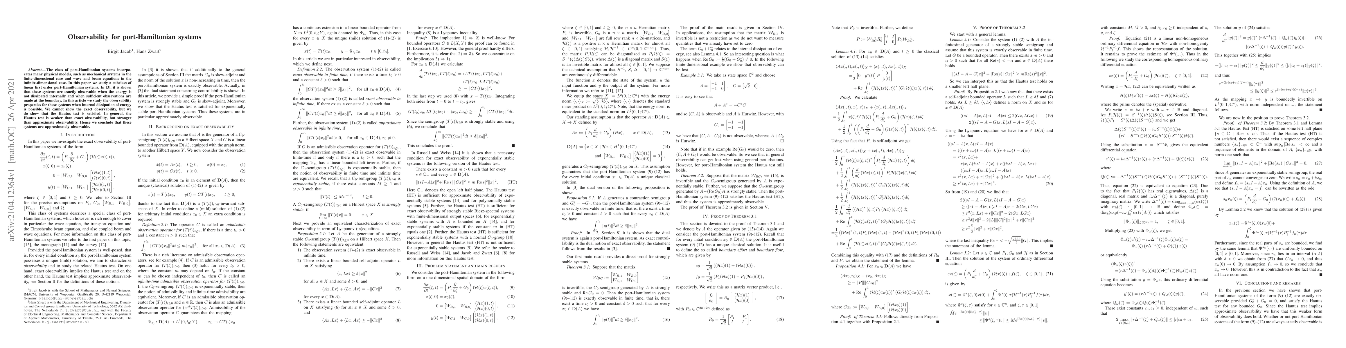This paper investigates observability in a subclass of linear first-order port-Hamiltonian systems, showing that while exact observability is not guaranteed when internal energy dissipation occurs, the Hautus test is satisfied, indicating approximate observability.