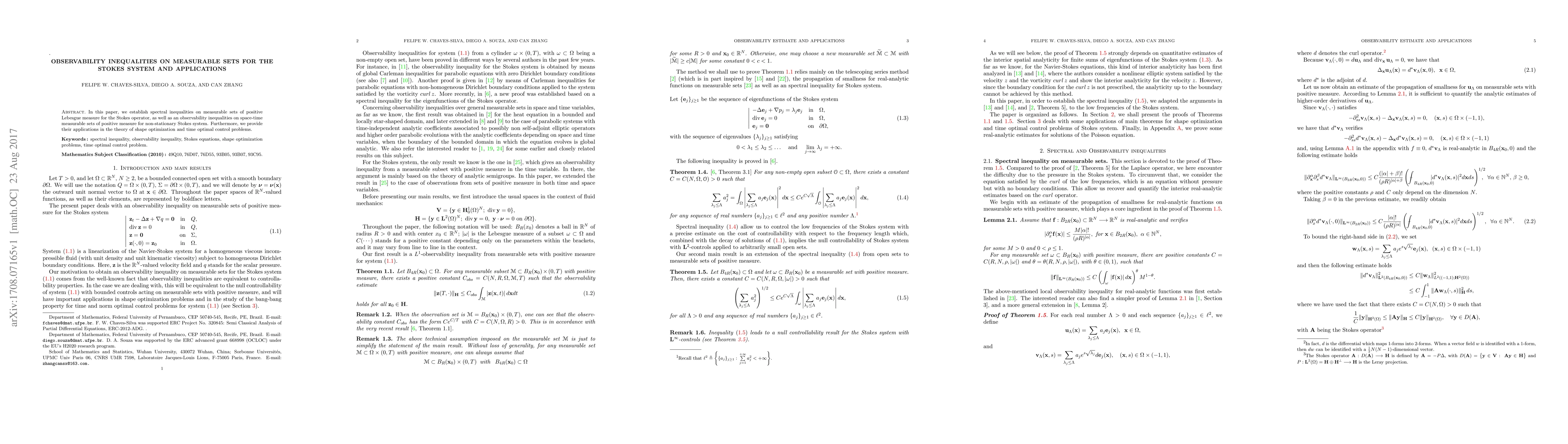 This paper establishes spectral and observability inequalities for the Stokes operator on measurable sets, with applications to shape optimization and time optimal control problems. These inequalities enhance understanding of the non-stationary Stokes system and its practical implications.