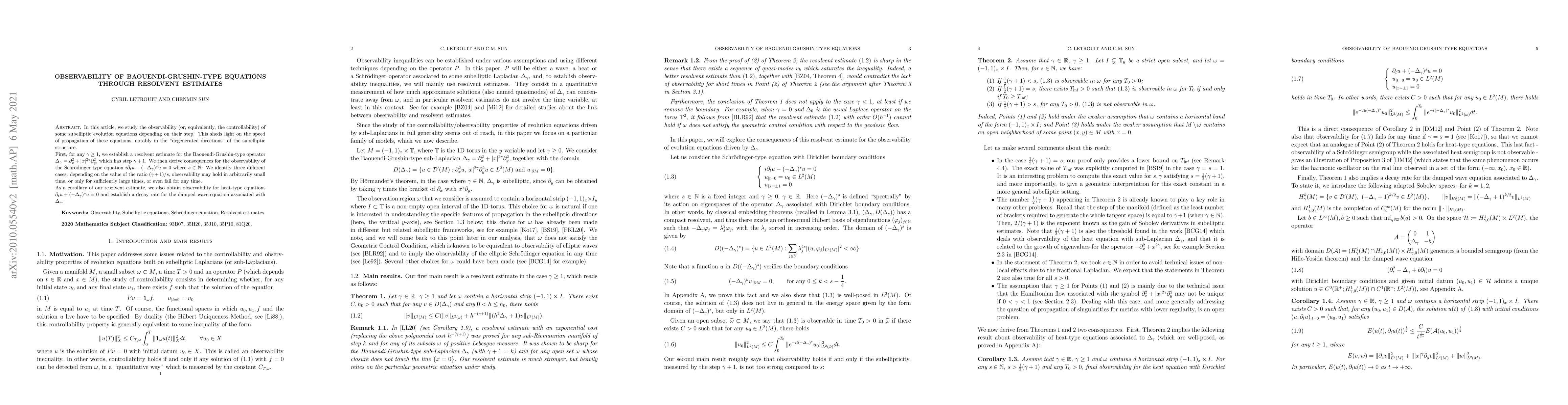 This study investigates the observability of subelliptic evolution equations, establishing resolvent estimates for specific operators and deriving consequences for the Schrödinger and heat-type equations, which sheds light on their propagation speed and decay rates.