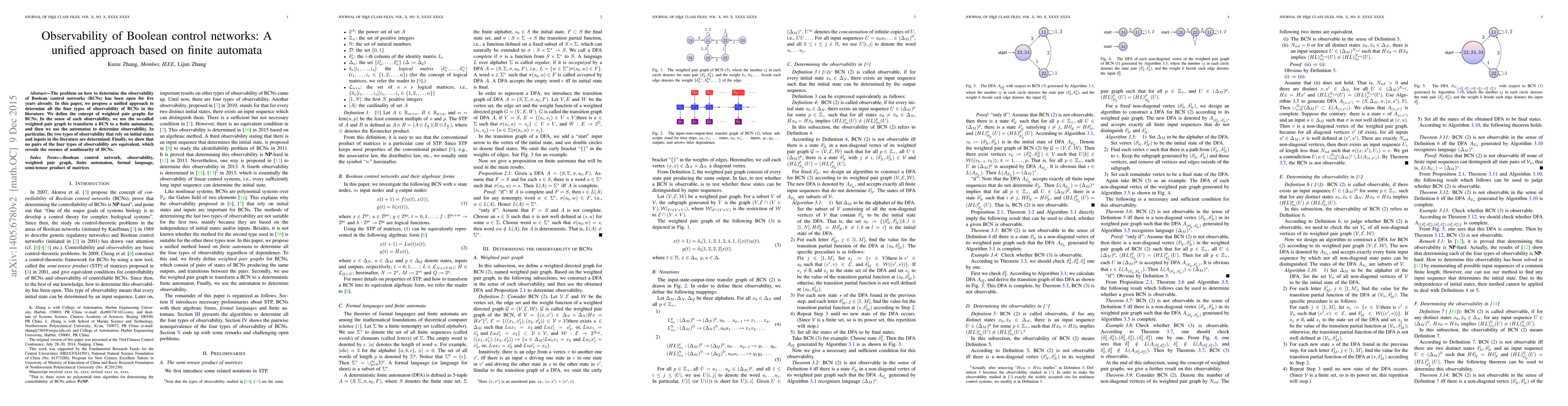 This paper proposes a unified method to determine the four types of observability in Boolean control networks (BCNs) using finite automata theory. It introduces weighted pair graphs to transform BCNs into finite automata, enabling observability determination and revealing the nonlinearity of BCNs by showing none of the observability types are equivalent.