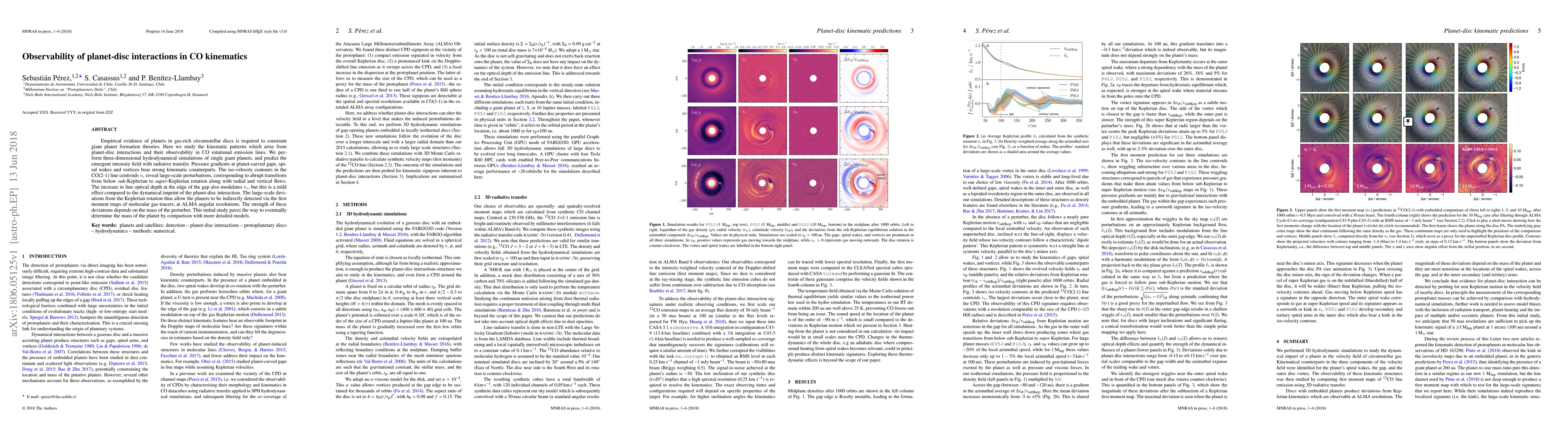 This study uses hydrodynamical simulations to explore how planet-disc interactions create observable kinematic patterns in CO rotational emission lines, revealing significant deviations from Keplerian rotation that can be indirectly detected via ALMA. The strength of these deviations correlates with the mass of the planet, providing a method to potentially determine planetary mass through detailed models.