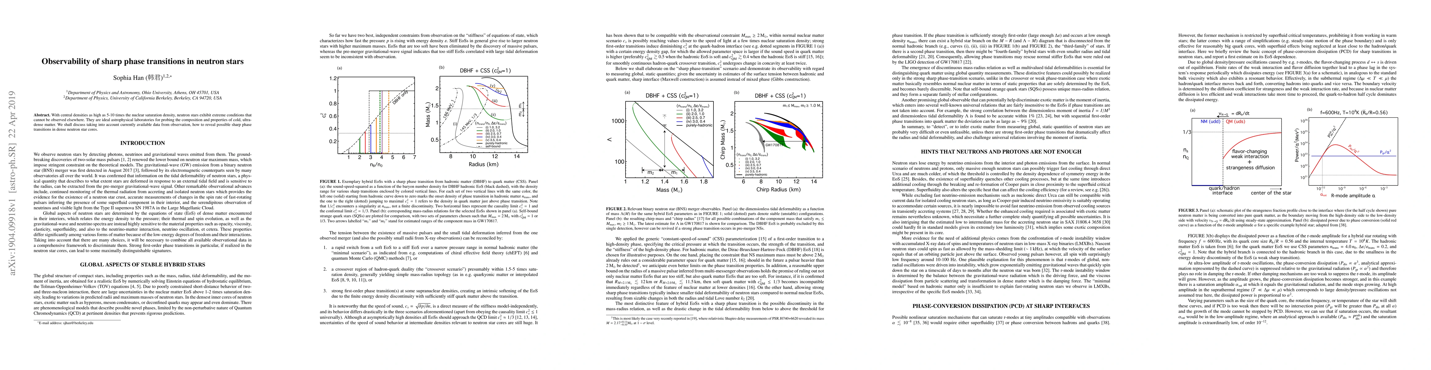 This paper investigates the potential observability of sharp phase transitions in neutron stars, using current observational data to explore the composition and properties of ultra-dense matter within these extreme astrophysical objects. The study aims to reveal possible phase transitions in the dense cores of neutron stars.