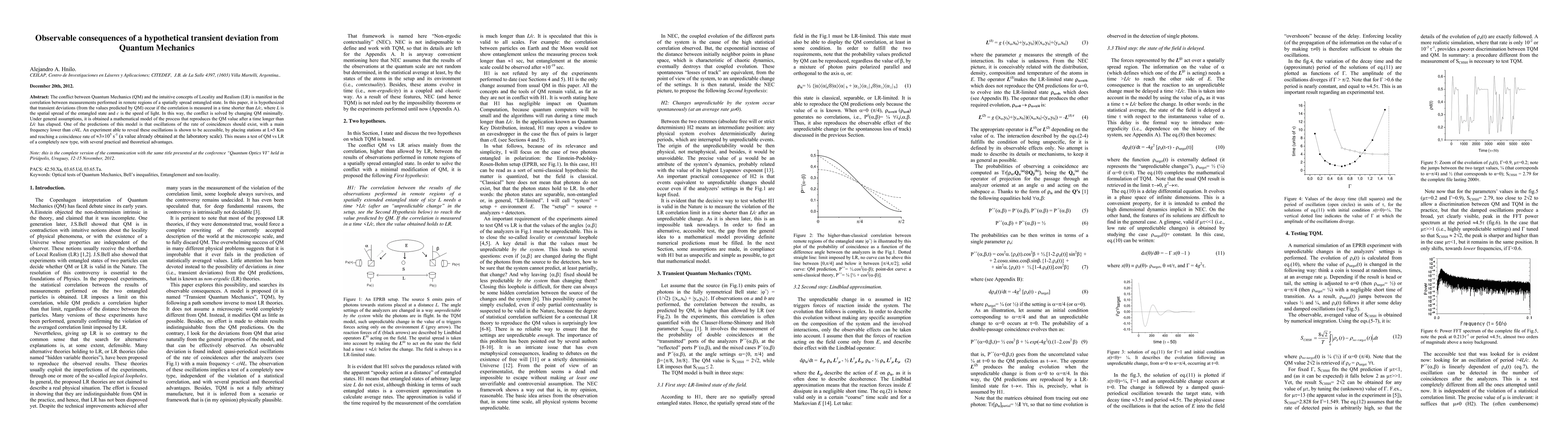 This paper hypothesizes transient deviations from Quantum Mechanics when measuring correlations in entangled states within a time shorter than the light travel time across the state's spatial spread, resolving the conflict with Locality and Realism. It proposes a mathematical model predicting oscillations in coincidence rates, which can be tested experimentally with stations spaced 5 km apart.
