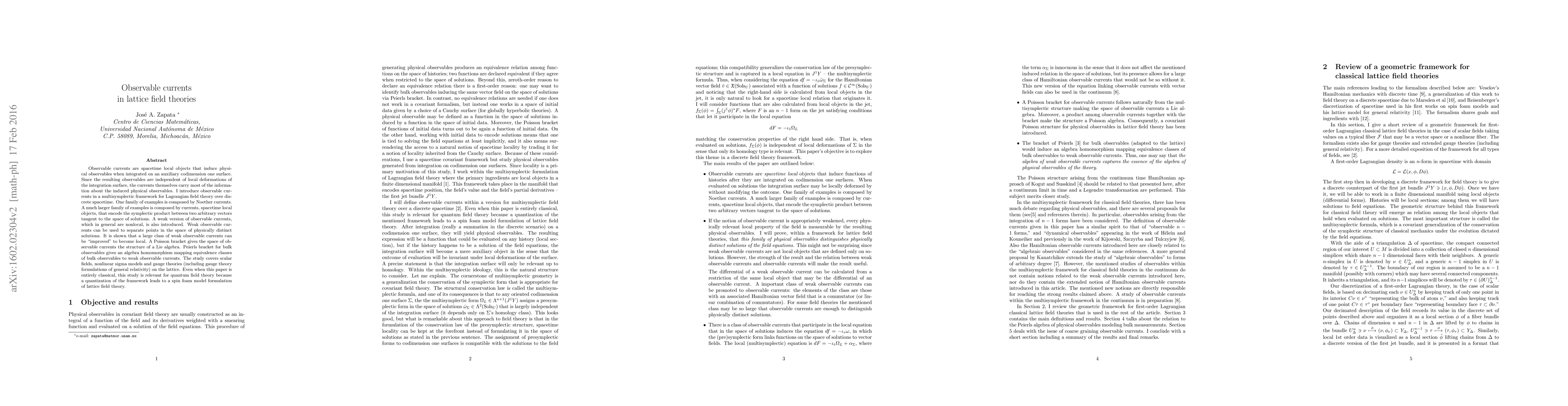 A local framework for multisymplectic field theories was developed, including a definition of observable currents and weak observable currents.