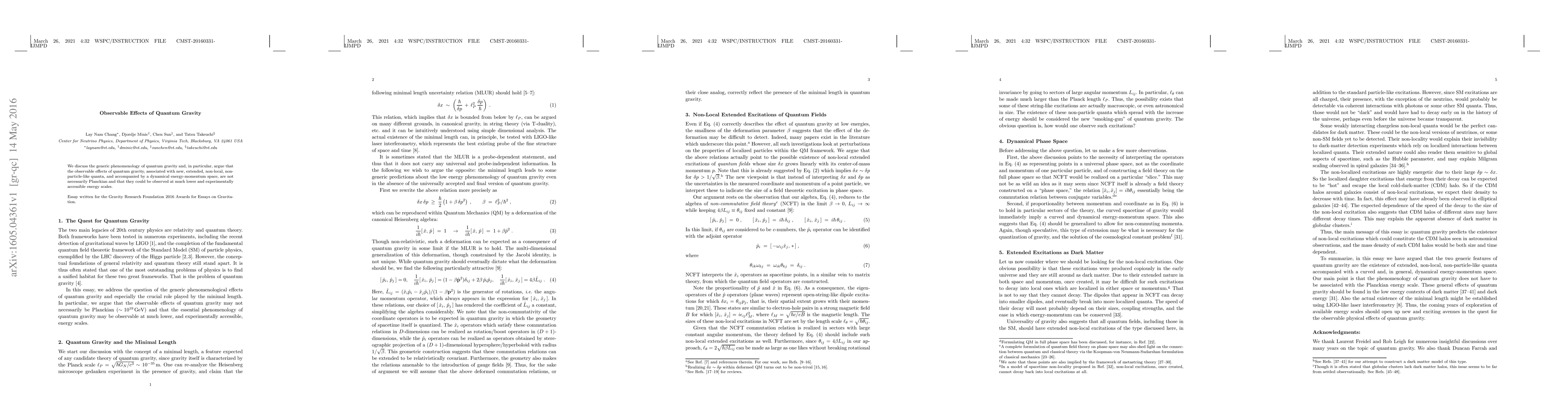 This paper argues that observable effects of quantum gravity, characterized by new, extended, non-local quanta and a dynamical energy-momentum space, may not require Planckian scales and could potentially be detected at experimentally accessible lower energy levels.