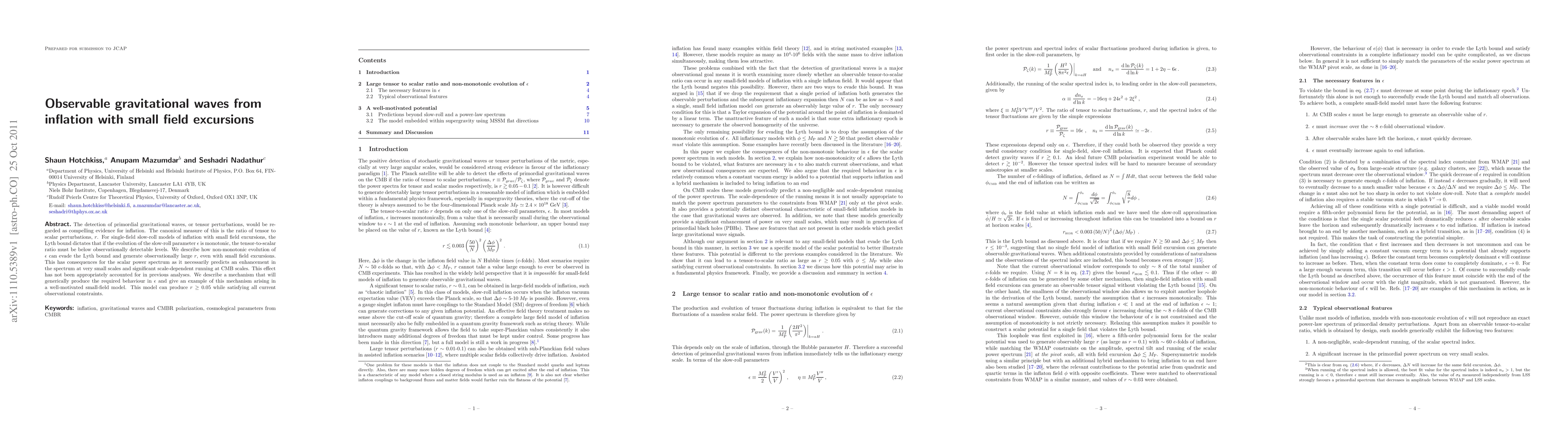 This paper explores how non-monotonic evolution of the slow-roll parameter epsilon in single-field inflation models with small field excursions can generate observable gravitational waves, evading the Lyth bound and predicting significant enhancements in the scalar power spectrum at small scales. The proposed mechanism can produce a tensor-to-scalar ratio r ≥ 0.05, consistent with current observational constraints.